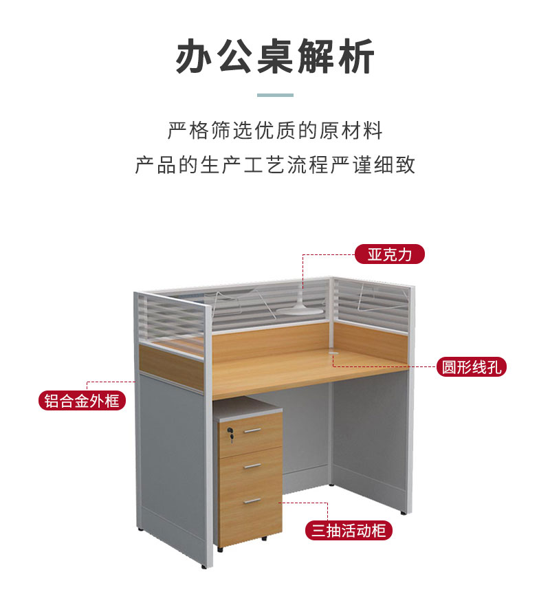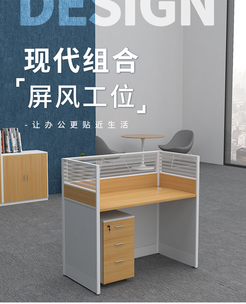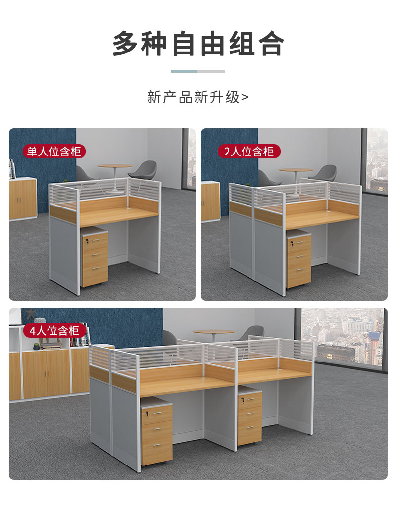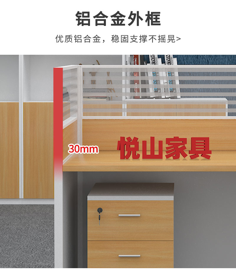 悦山 办公桌员工电脑桌屏风工位含柜黄橡木色+白色 4人位2800*1200*1100*1组