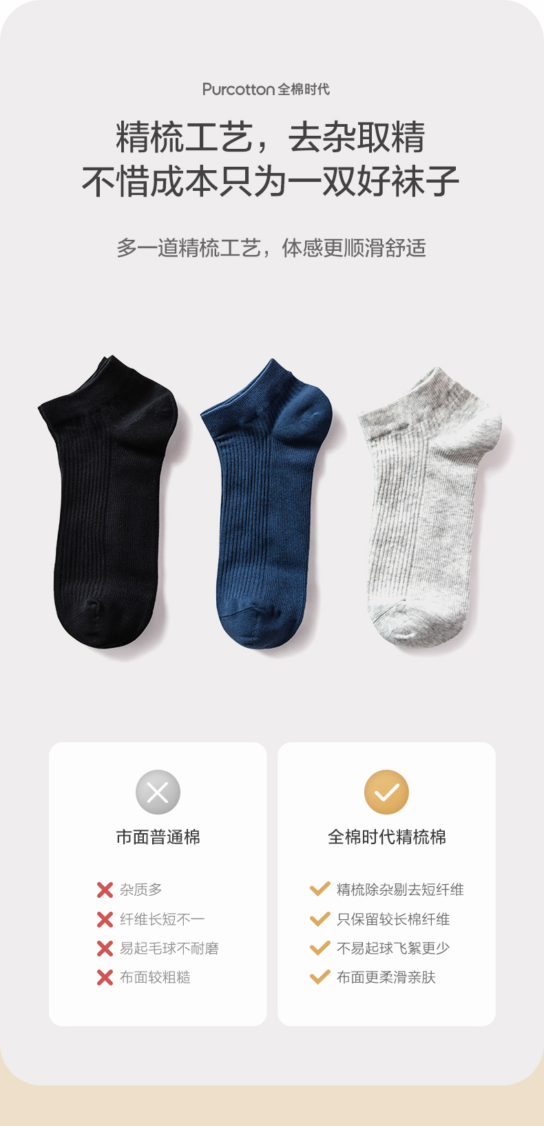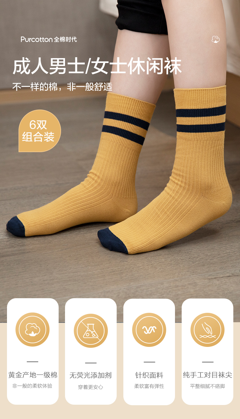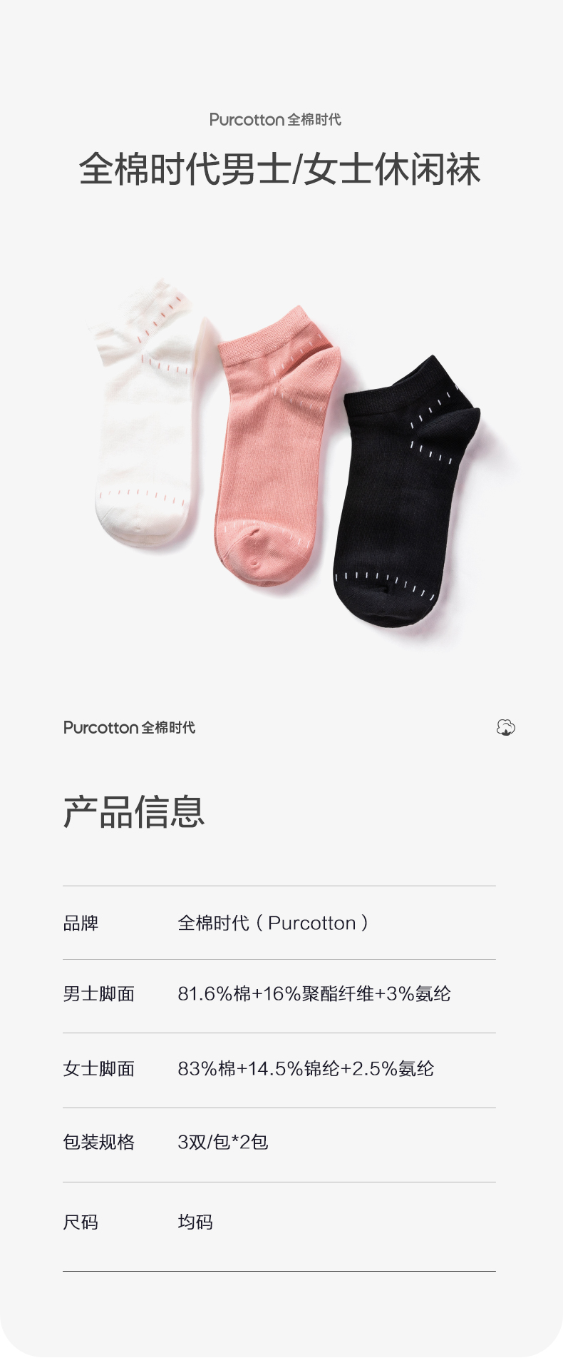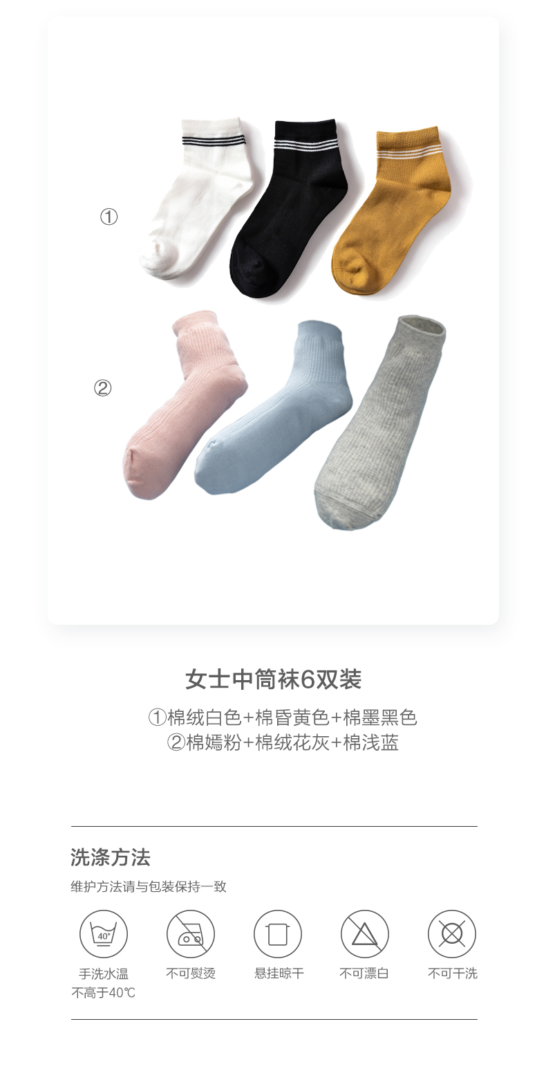 全棉时代女士舒棉中筒袜均码 棉嫣粉+棉绒花灰+棉浅蓝 3双装 (单位:双) 粉色