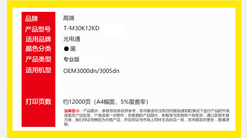 高端硒鼓T-M30K12KD鼓组件专业版适用光电通OEM3000dn/3005dn 黑色