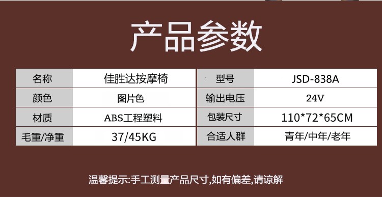 佳胜达 按摩椅沙发太空豪华舱豪华电动多功能全身按摩JSD-838A 酒红