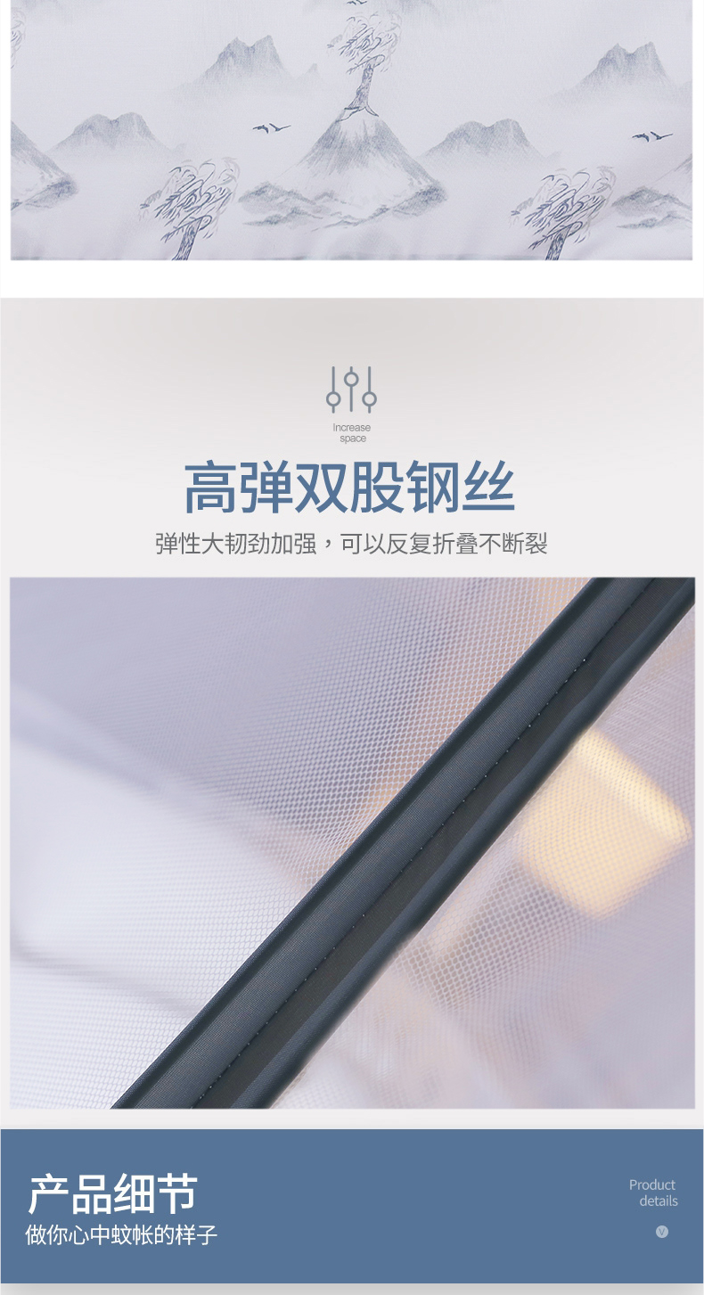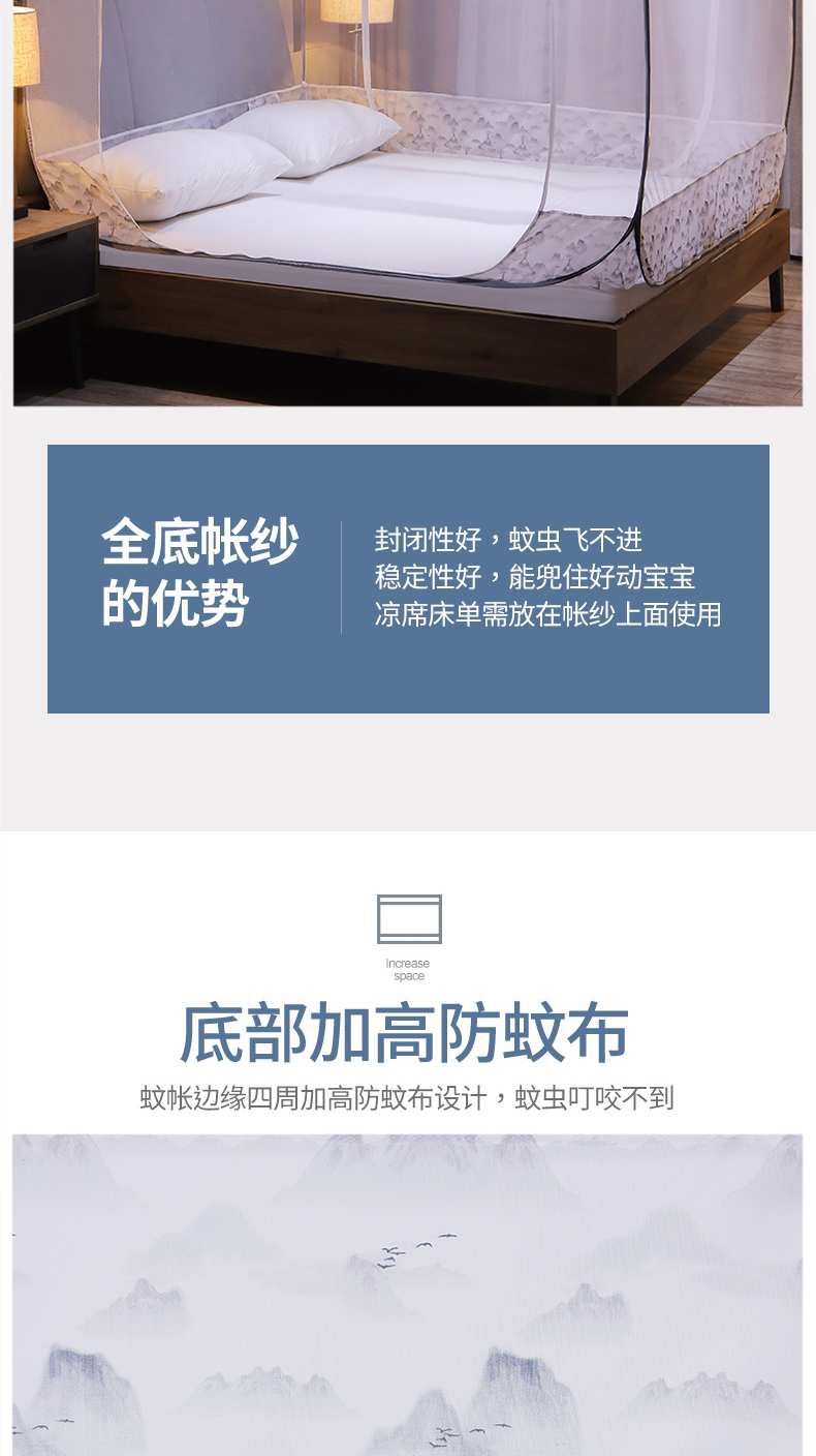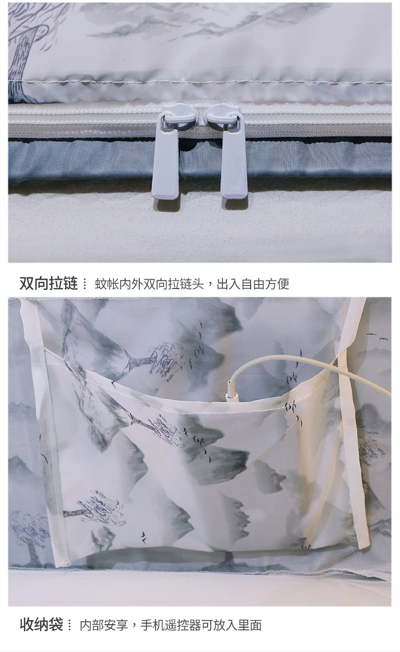 南极人 NJWZ80 三开门免安装钢丝蚊帐 150*200cm 江山如画(单位:顶) 白色