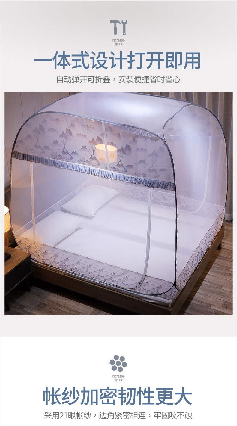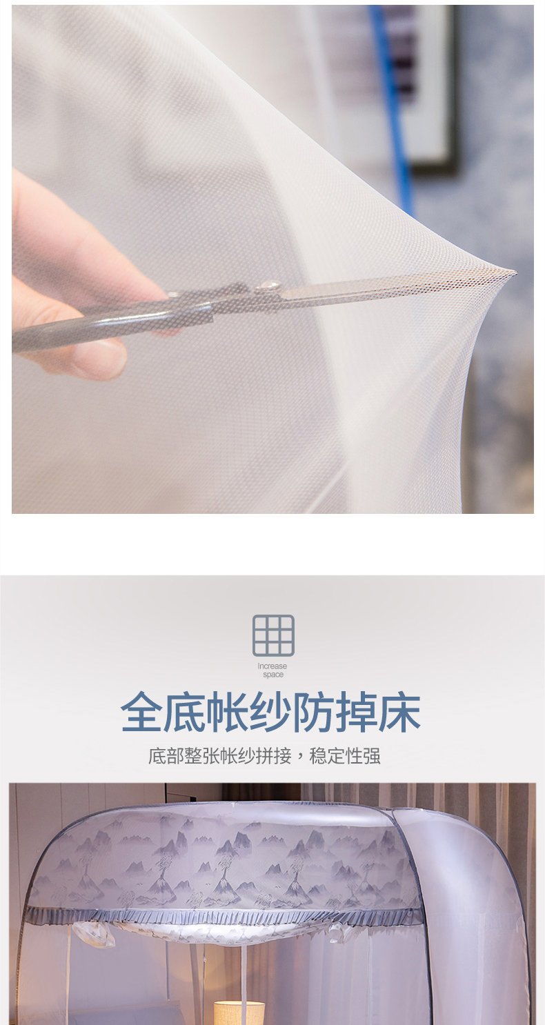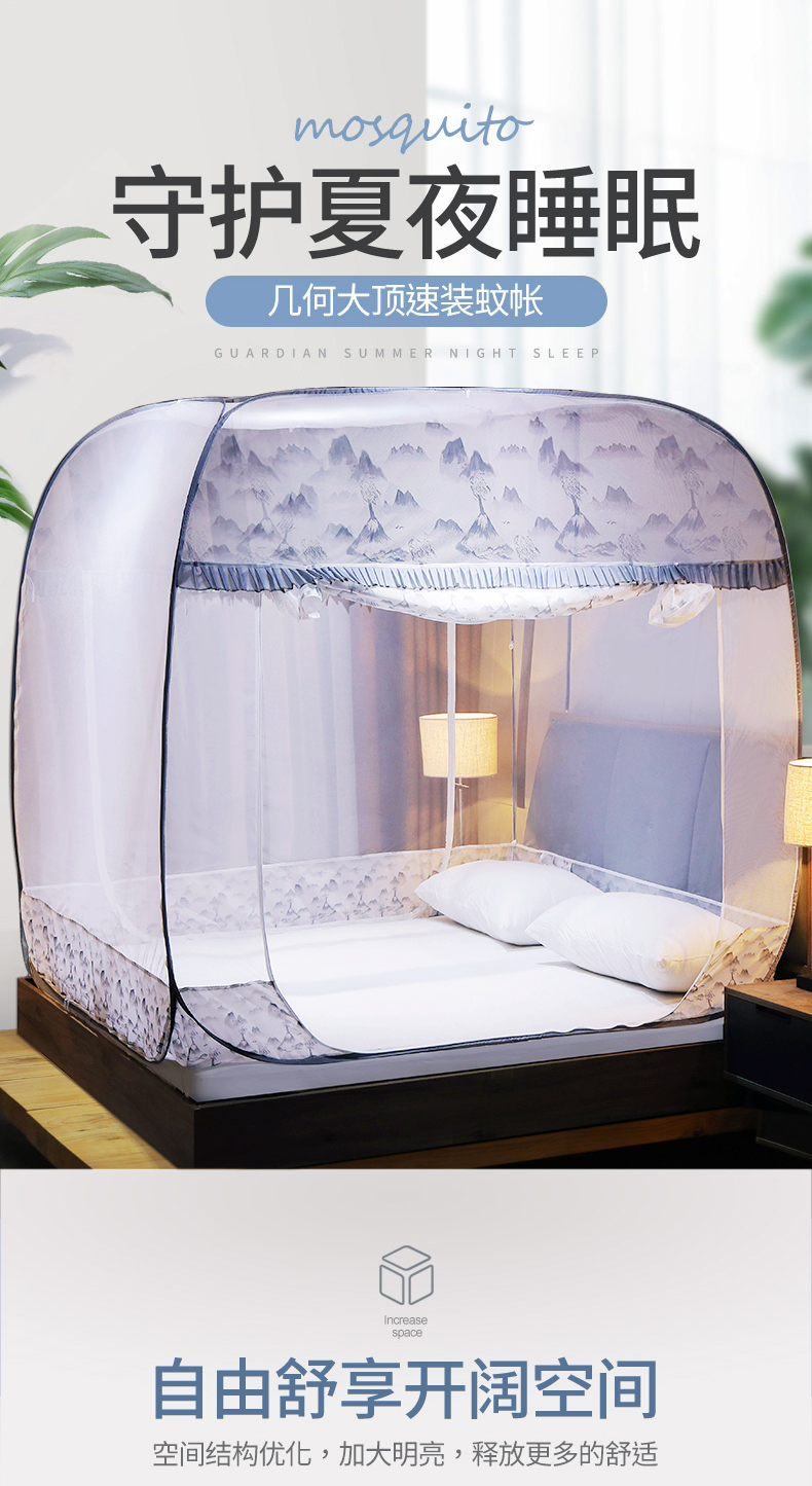 南极人 NJWZ80 三开门免安装钢丝蚊帐 150*200cm 江山如画(单位:顶) 白色