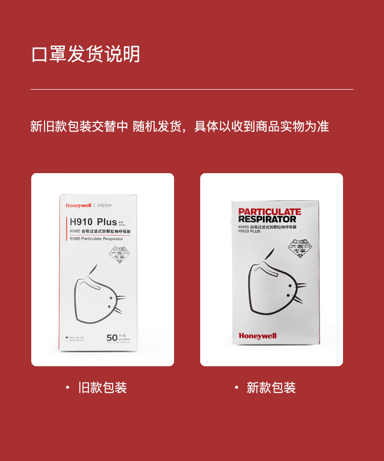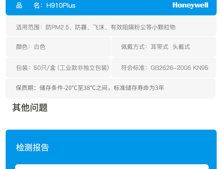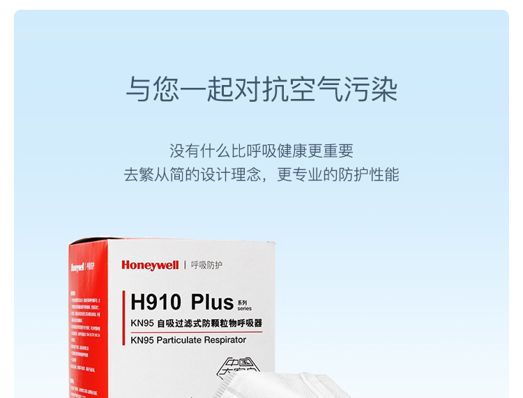 霍尼韦尔(Honeywell)口罩KN95 H910Plus防工业粉尘 防雾霾口罩头带环保装 50只/盒 白色