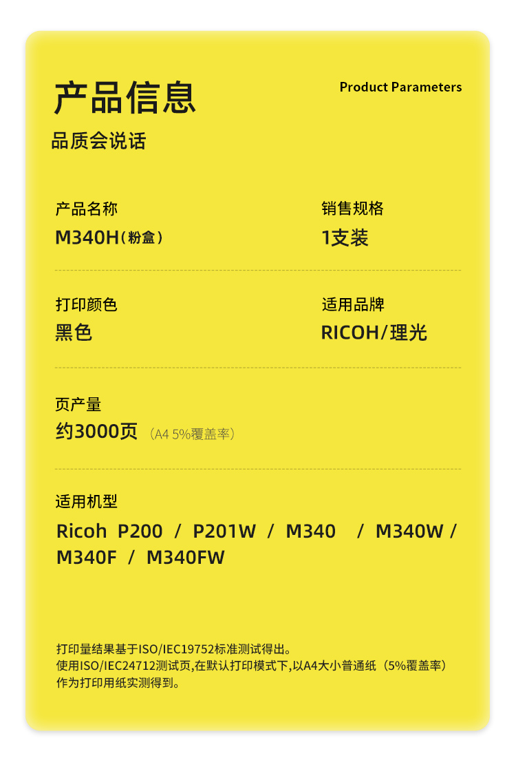 科思特 M340H 打印量3000页(适用RICOH P200/P201W/M340/M340W/M340F/M340FW) 粉盒 1.00 只/支 (计价单位:支) 黑色