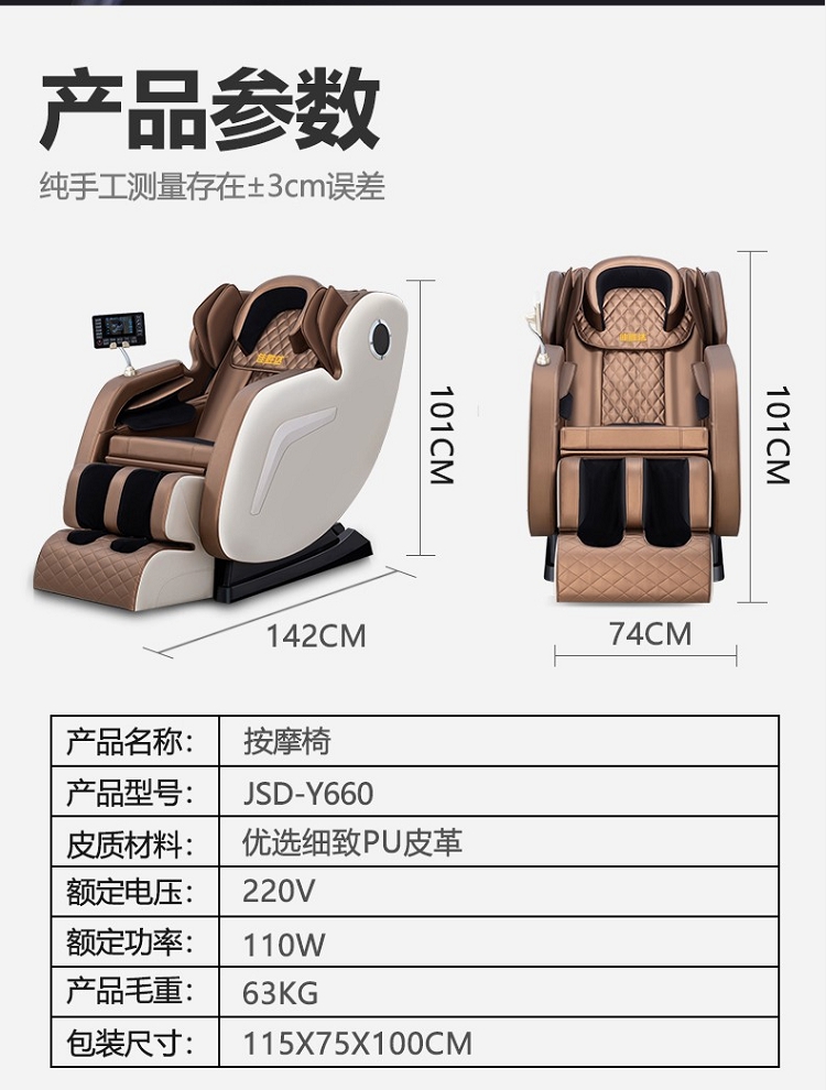 佳胜达按摩椅JSD-Y660霄遥椅沙发太空豪华舱家用全自动豪华电动多功能全身按摩 香槟色