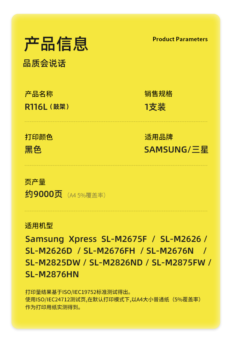 科思特 R116L 专业版 打印量约9000页 适用三星M2626 M2825 等 鼓架 1.00 只/支 (计价单位:支) 黑色