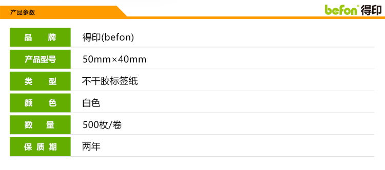 得印(befon) 铜版纸 50mm*40mm 不干胶标签纸 (计价单位:盒) 白色 钢琴白
