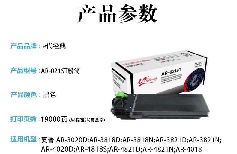 e代经典 AR-021ST/022ST墨粉筒高容量 夏普AR-3020D 3818D 3821D黑色 黑色