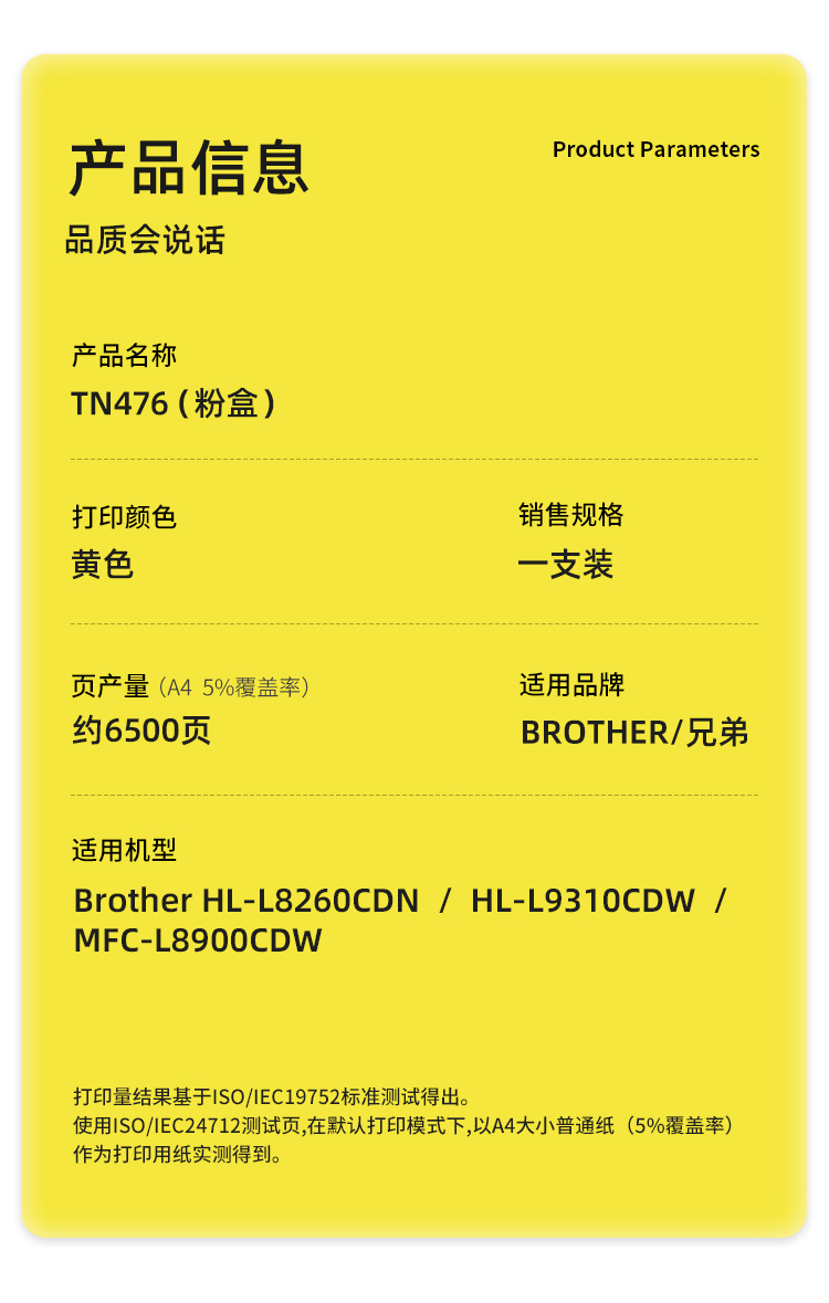 科思特 K TN476专业版(鼓粉分离)适用Brother HL-L8260CDN/HL-L9310CDW/MFC-L8900CDW 粉盒1只 6500页黄色 粉盒 (计价单位:只) 黄色