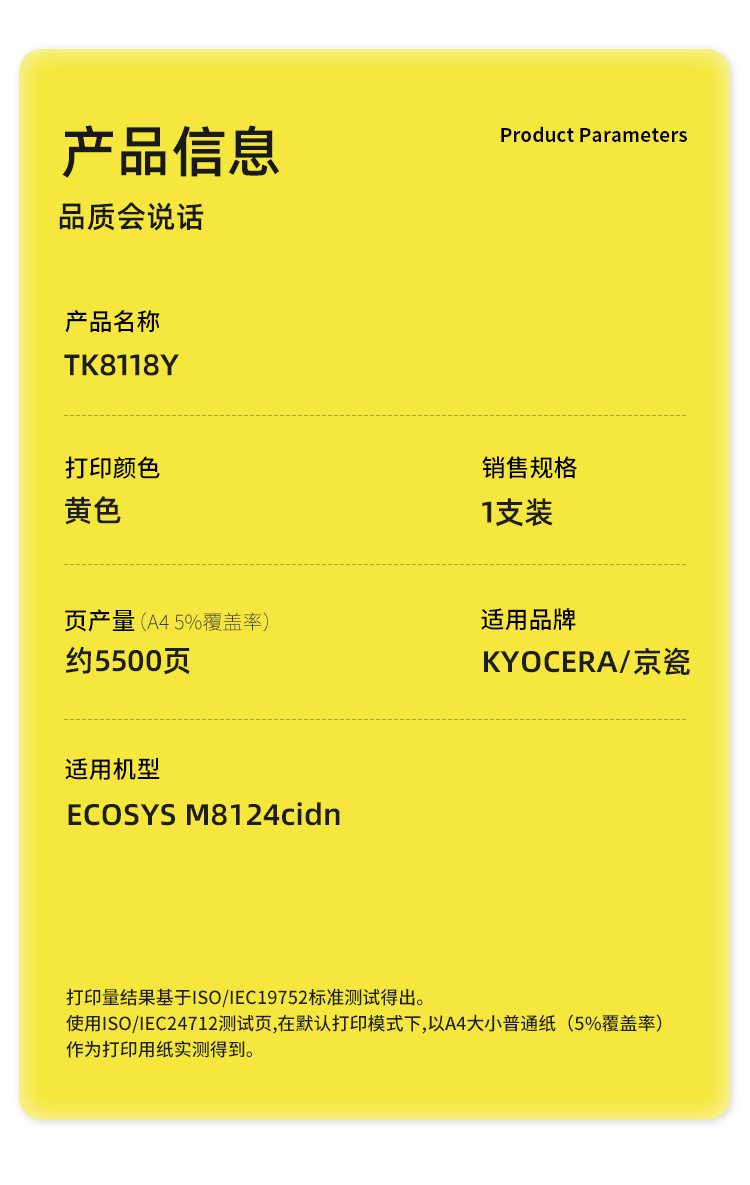 科思特(KST)兼容K TK-8118Y 粉盒(鼓粉分离)黄色单支装 专业版 黄色