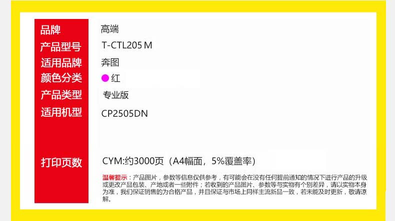 高端彩色粉盒T-CTL205M专业版适用奔图CP2505DN 支 红色