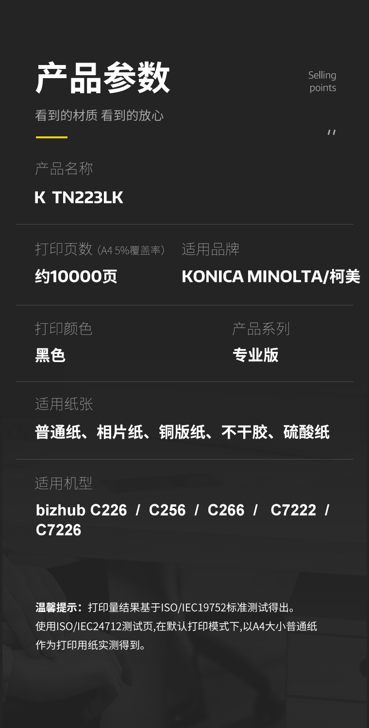 科思特 TN223L/ADT225L 专业版10000页适用柯尼卡美能达 bizhub C226/C266/C7222/震旦ADC225/265 粉盒 (计价单位:只) 黑色