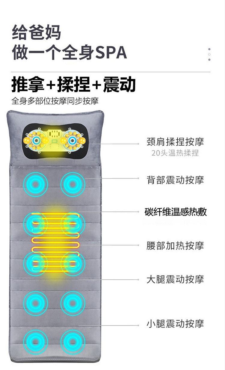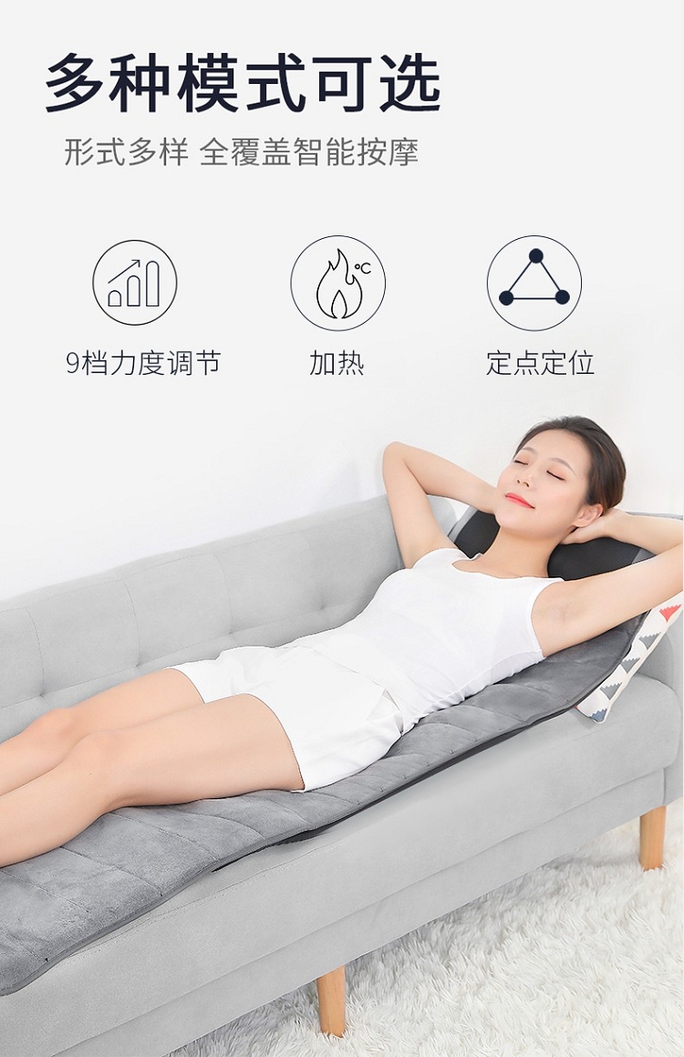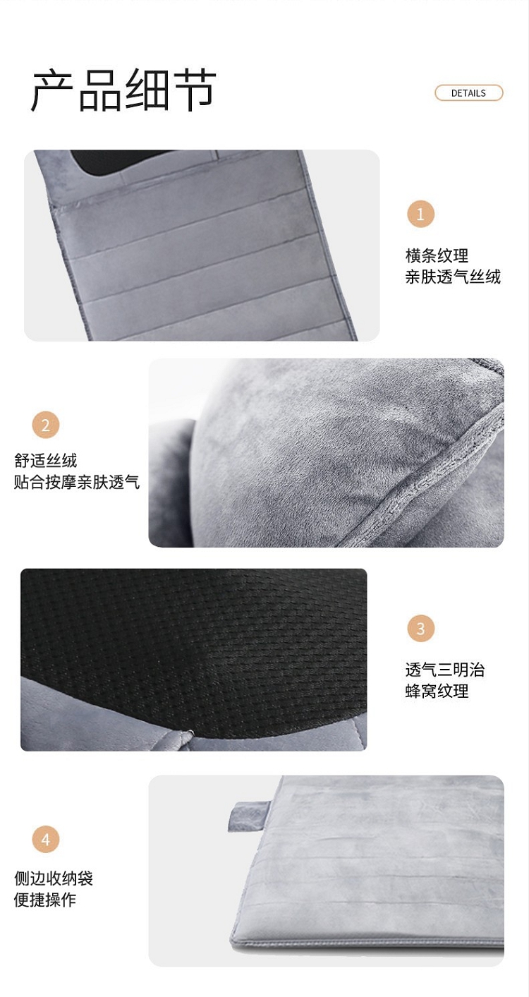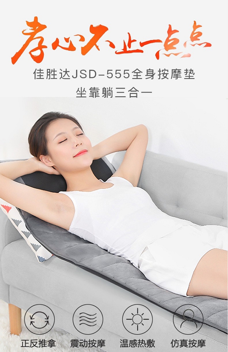 佳胜达 按摩床垫全身多功能颈腰部震动揉捏家用智能加热按摩椅垫JSD-555 浅灰色