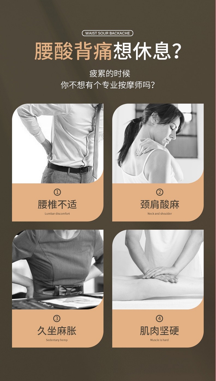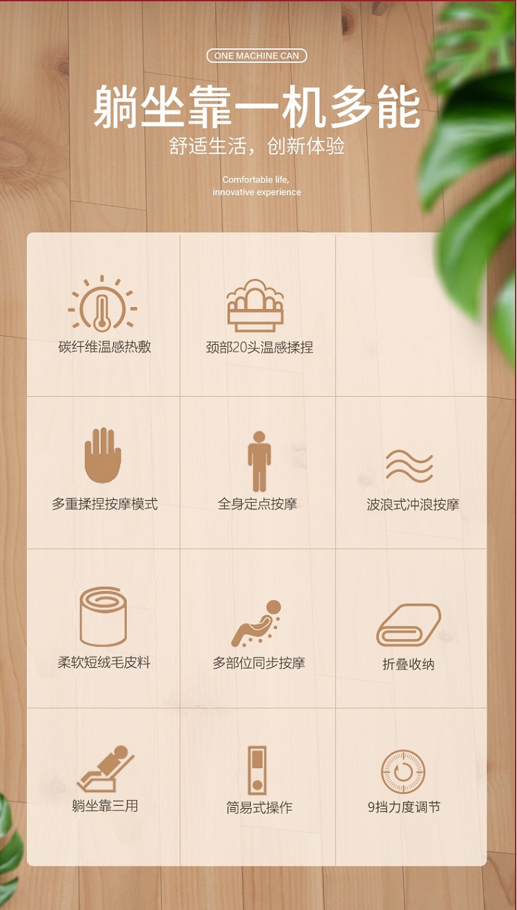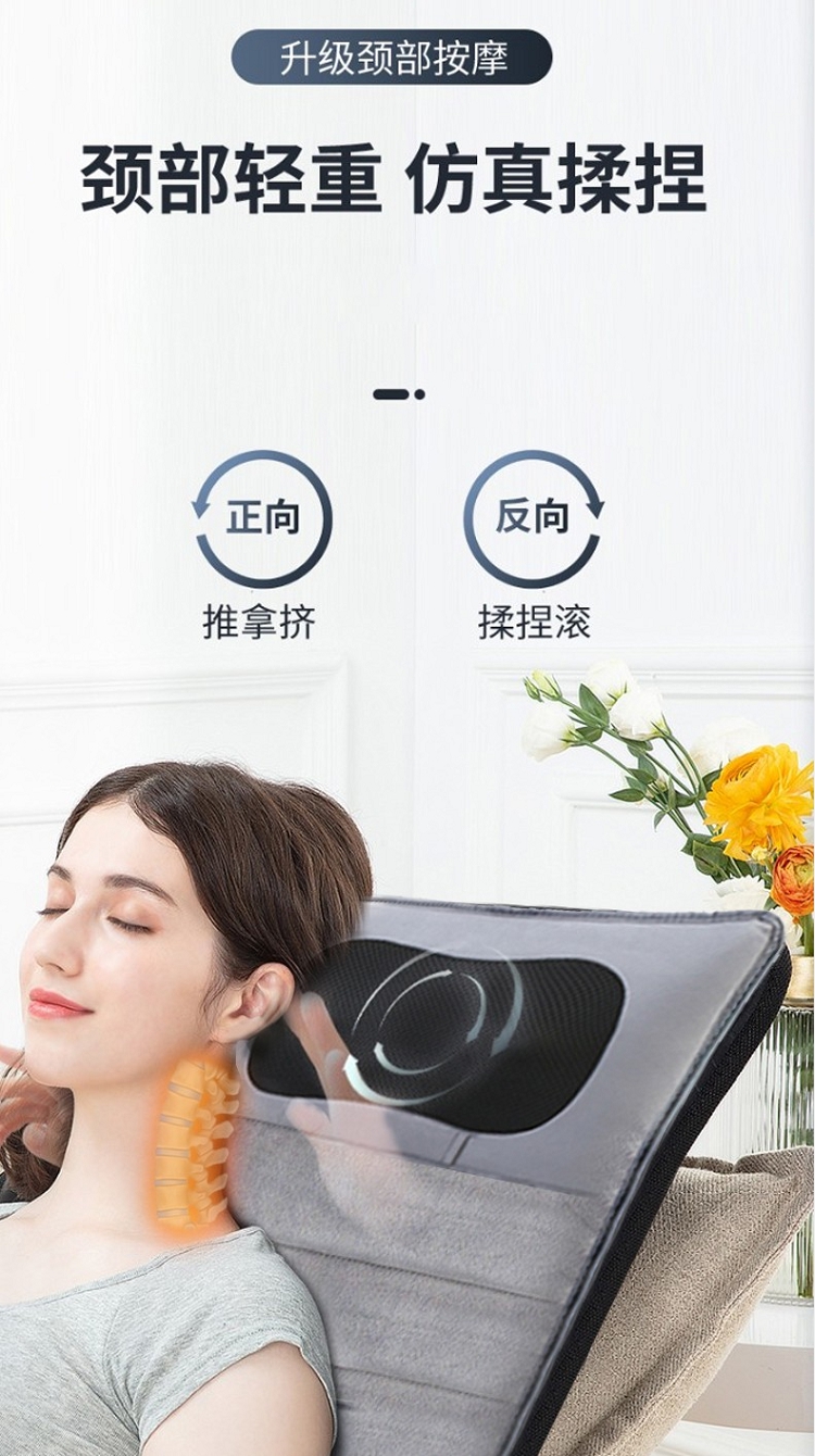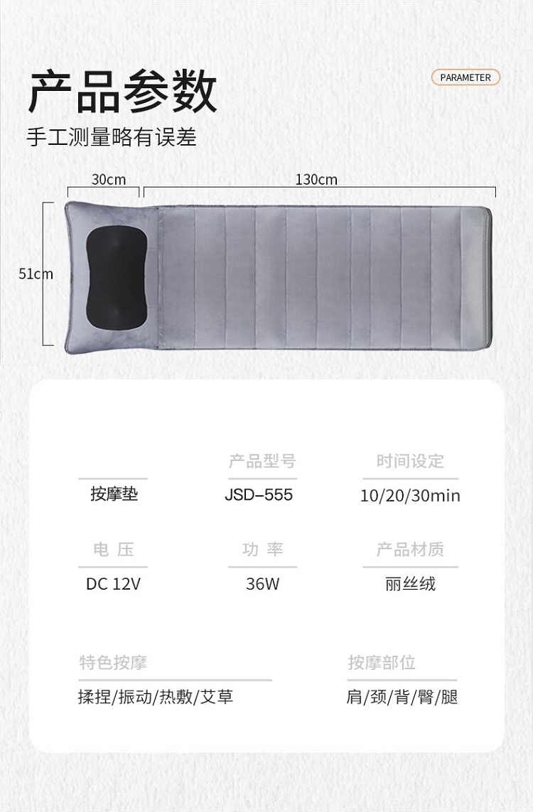 佳胜达 按摩床垫全身多功能颈腰部震动揉捏家用智能加热按摩椅垫JSD-555 浅灰色