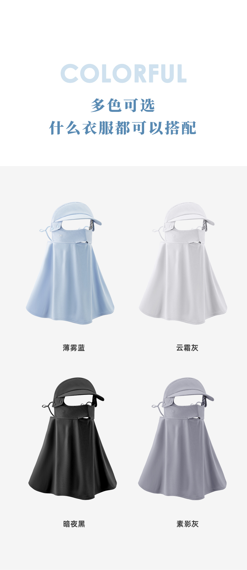 ohsunny暮光系列帽檐款肩颈防晒面罩SLF4M297T(单位:个) 云霜灰