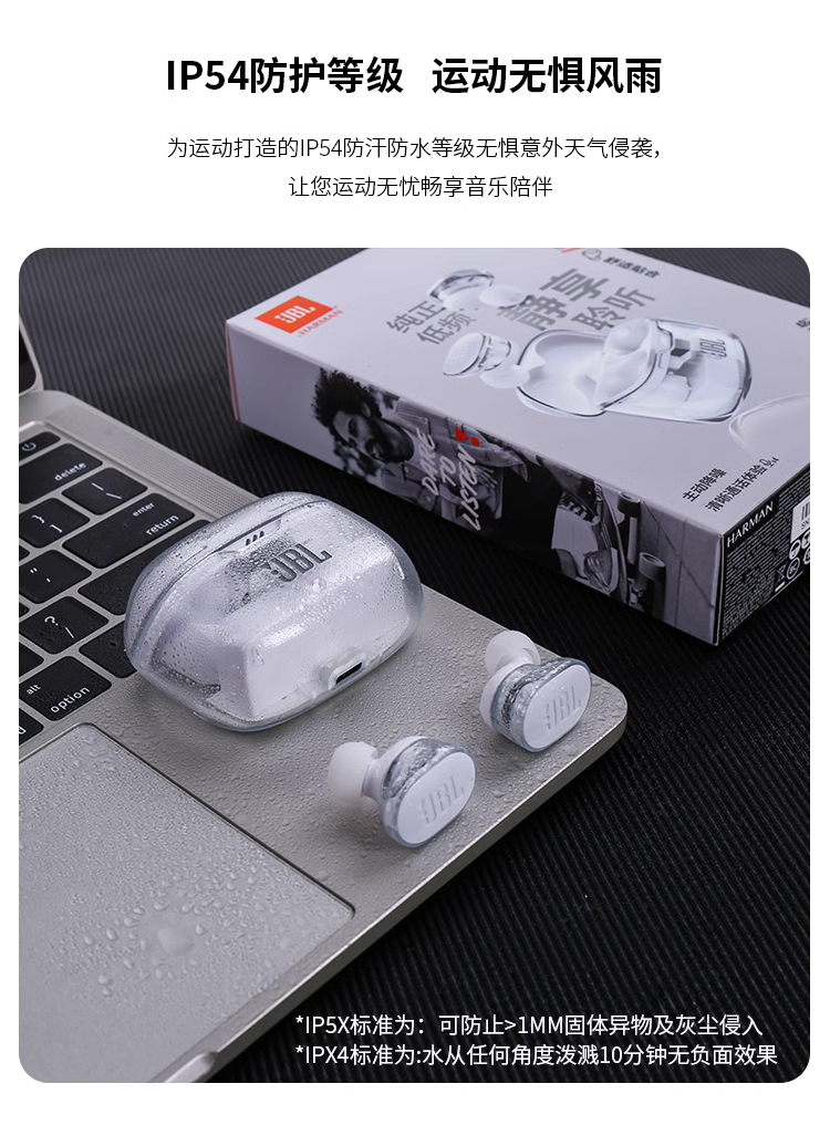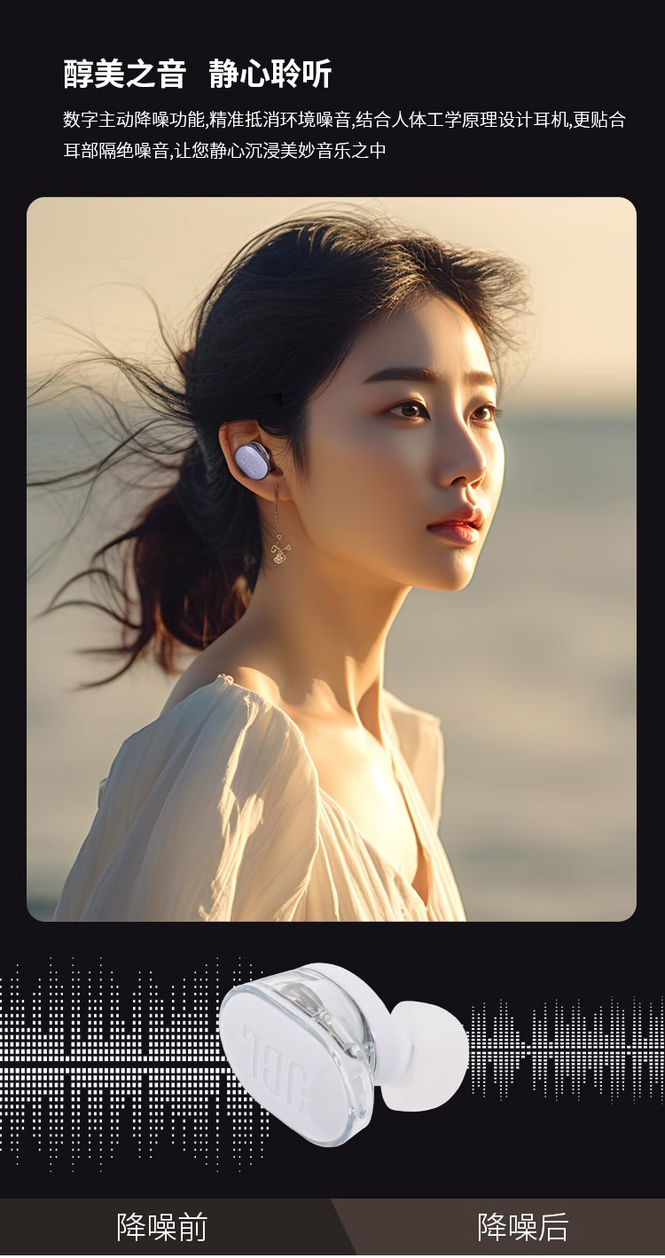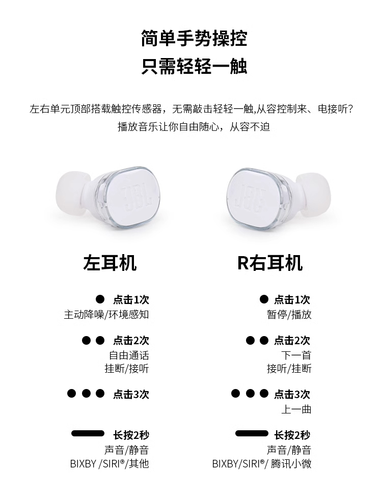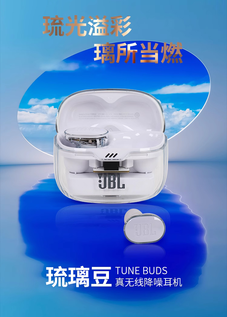 JBL TUNE BUDS蓝牙耳机降噪运动防水入耳式琉璃豆新款正品耳塞 白色