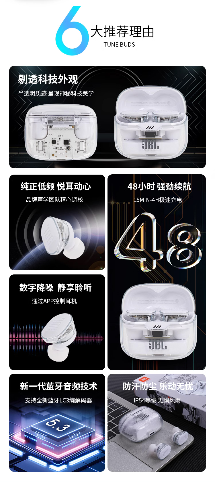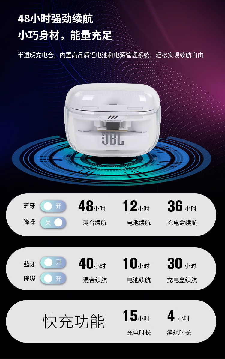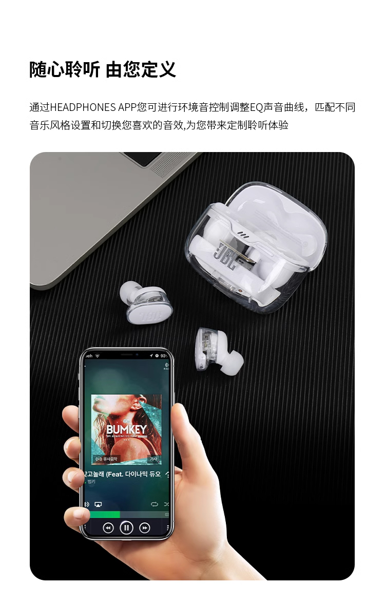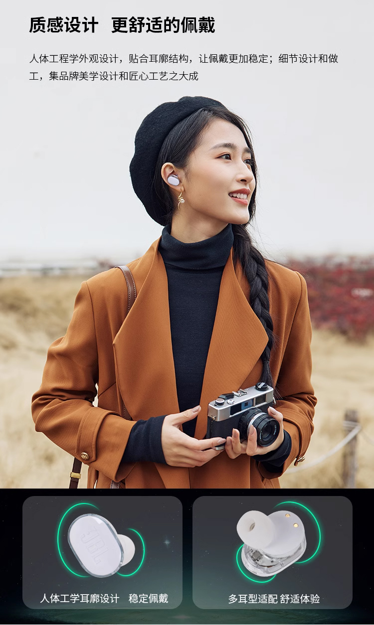 JBL TUNE BUDS蓝牙耳机降噪运动防水入耳式琉璃豆新款正品耳塞 白色