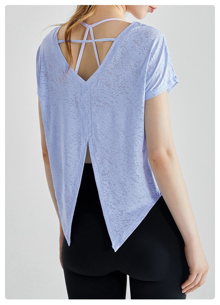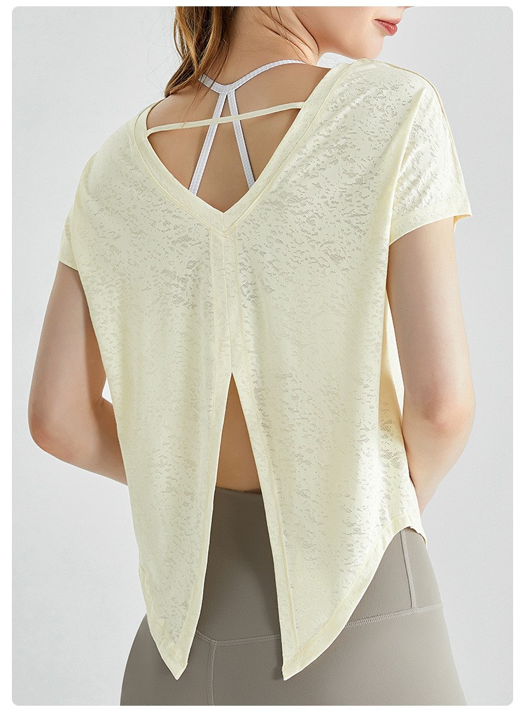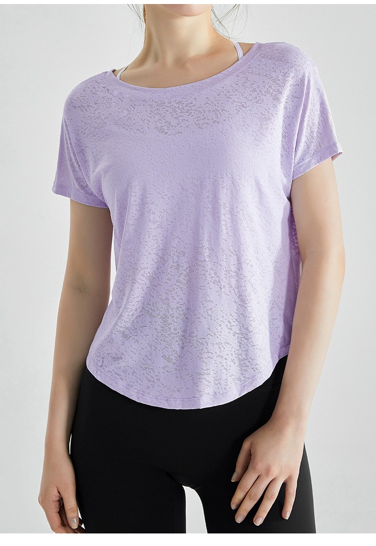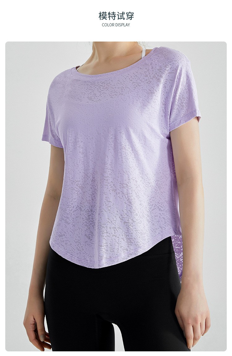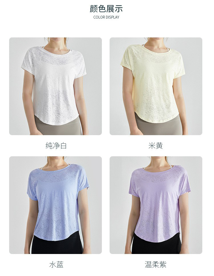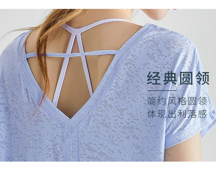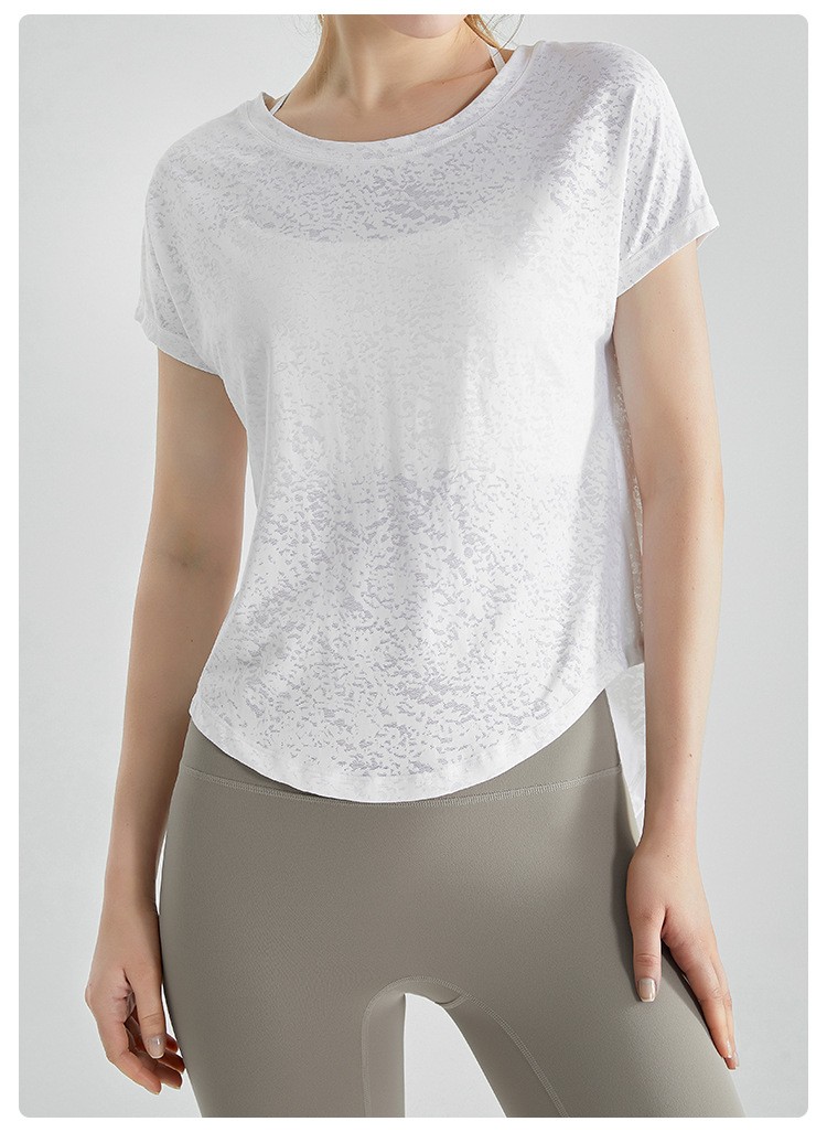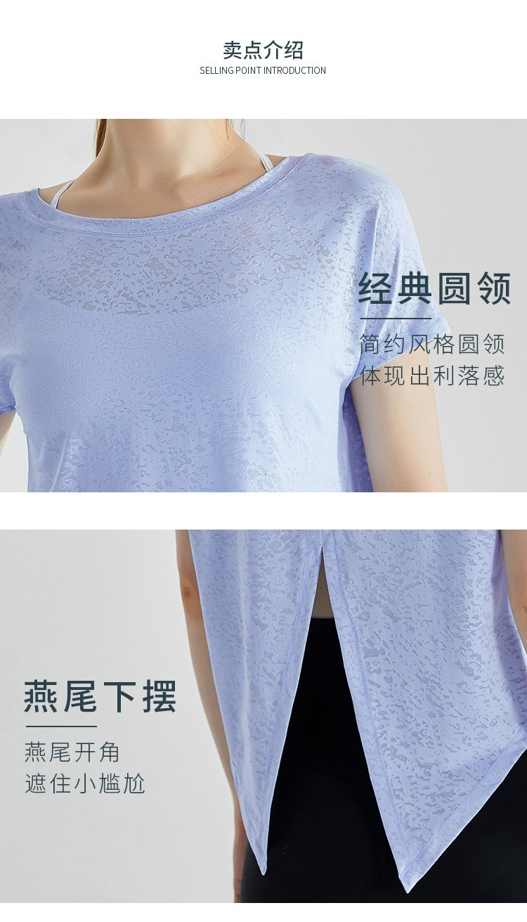 唯卡洛vincrox健身罩衫女夏速干宽松透气圆领提花后背开叉瑜伽短袖t恤女款 23064(单位:件) 纯净白M