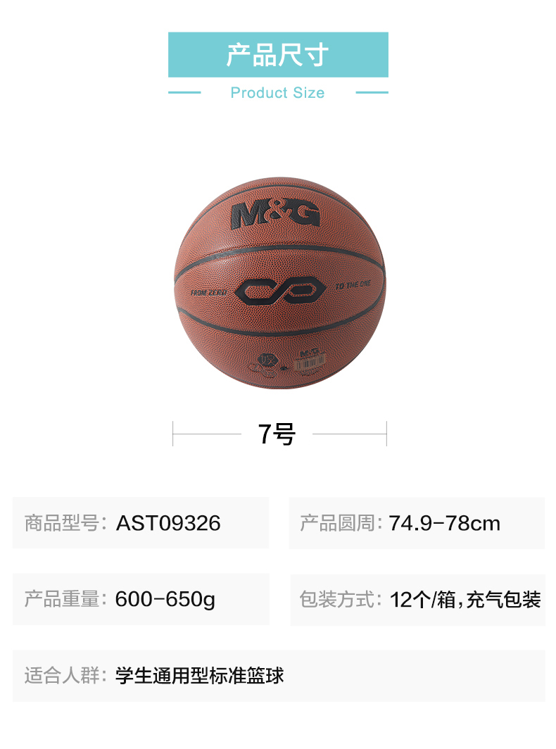 晨光(M&G) AST09326 74.9-78cm PVC篮球7号 砖色(单位:个)