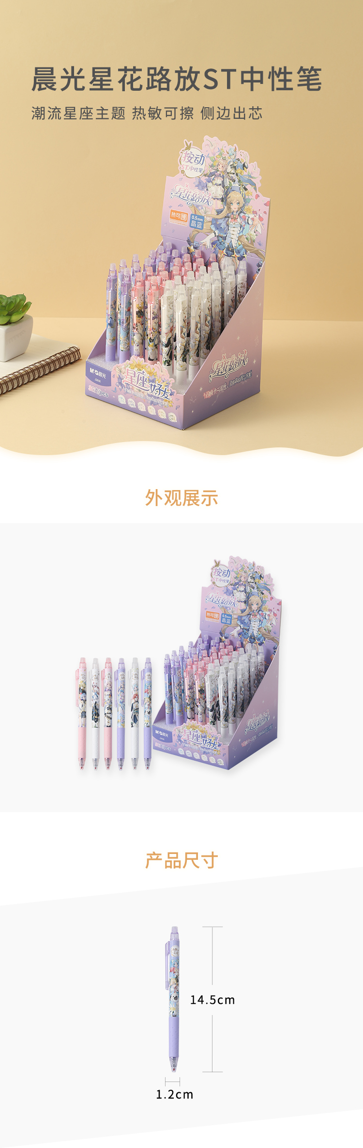 晨光(M&G) J2606 6支(笔杆图案随机) 星花路放热可擦中性笔 黑色(单位:套)