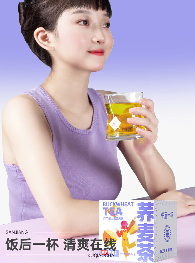 三匠 荞麦茶春夏热冷泡茶包养身茶泡水 黑苦荞茶麦香 16袋/盒(16*5g)*5盒 白色(单位:组)