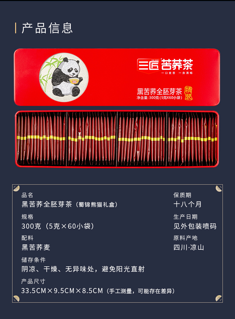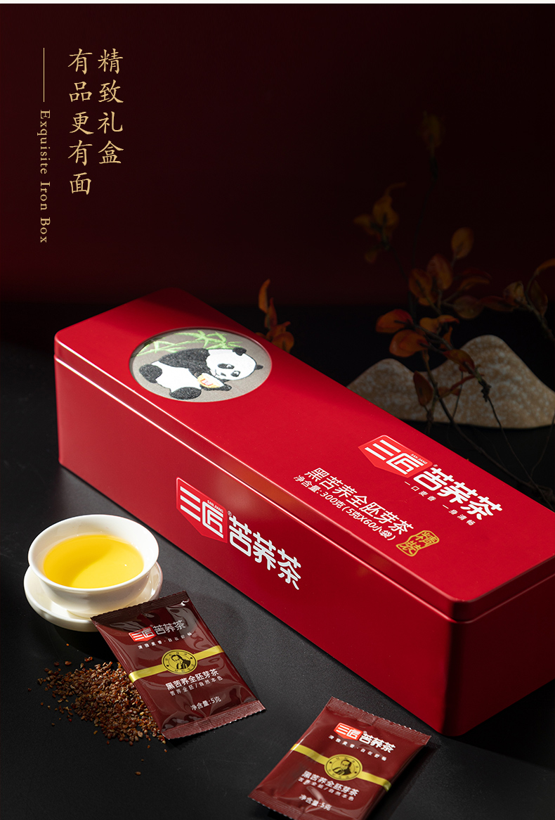 三匠 蜀锦熊猫大凉山苦荞茶 黑苦荞全胚芽茶 (5g*60)*2套 红色(单位:组)