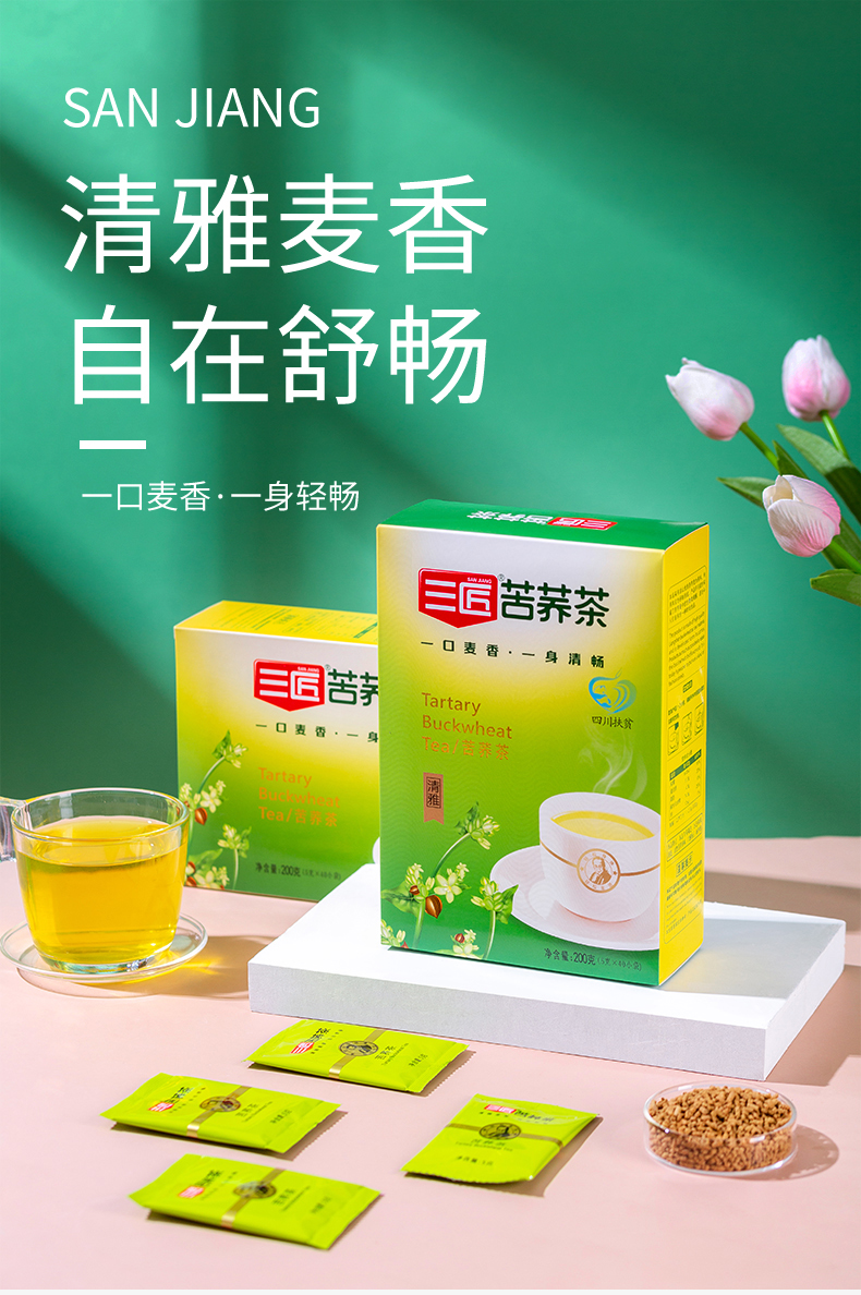 三匠 麦香原味四川大凉山特产 苦荞茶 200克*3盒 绿色(单位:组)