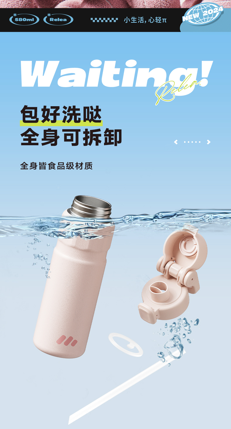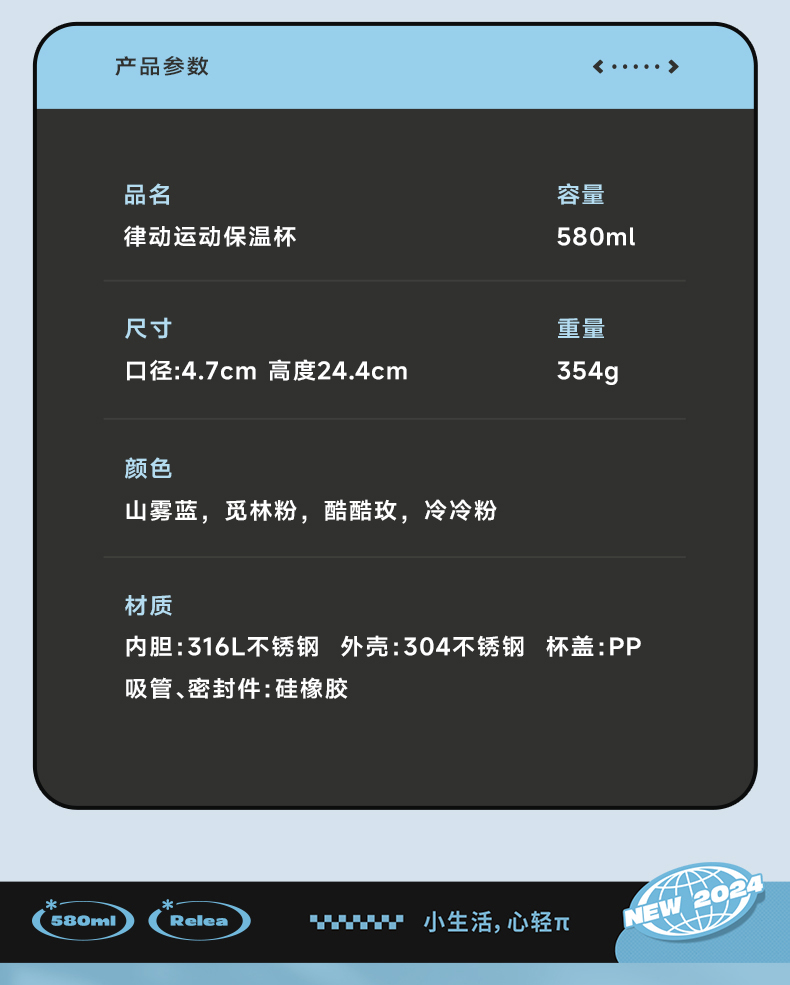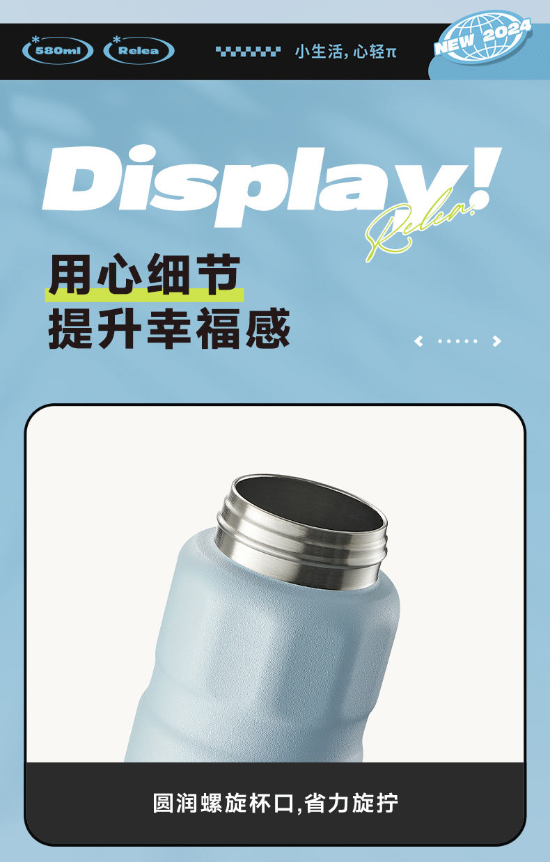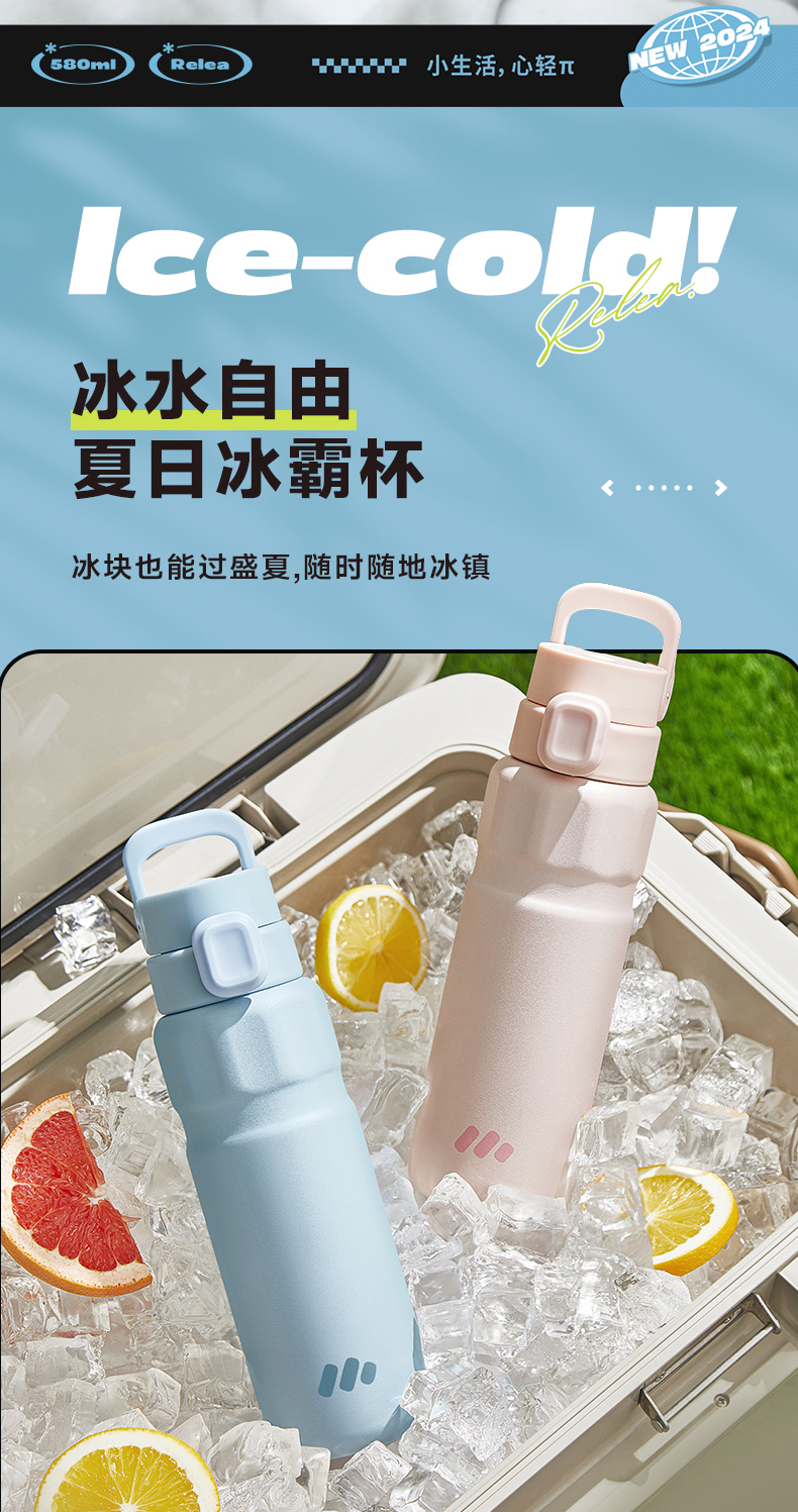 物生物(RELEA) 律动运动保温杯 JV012469-0580-LS00 580ML 山雾蓝(单位:个)
