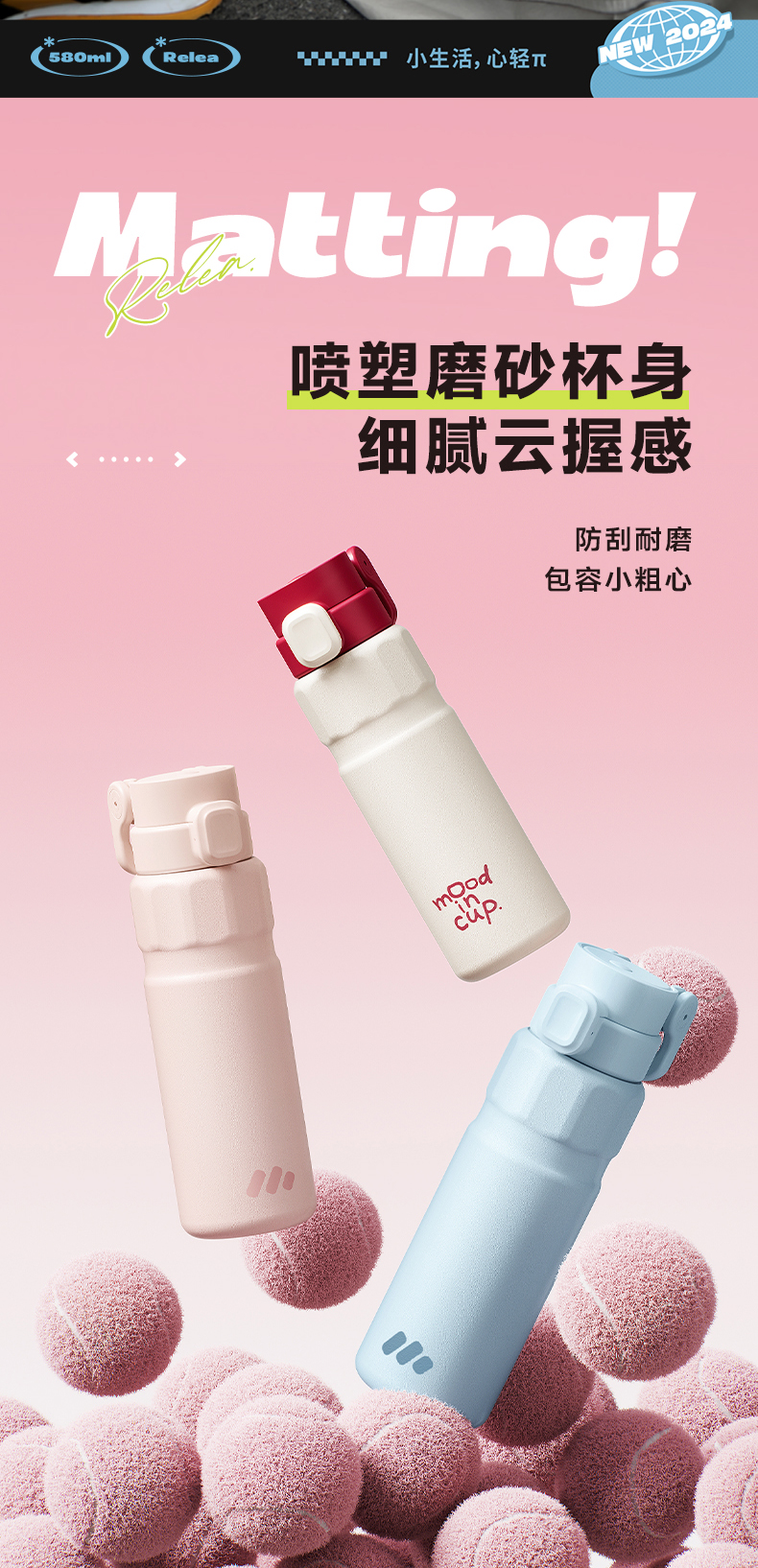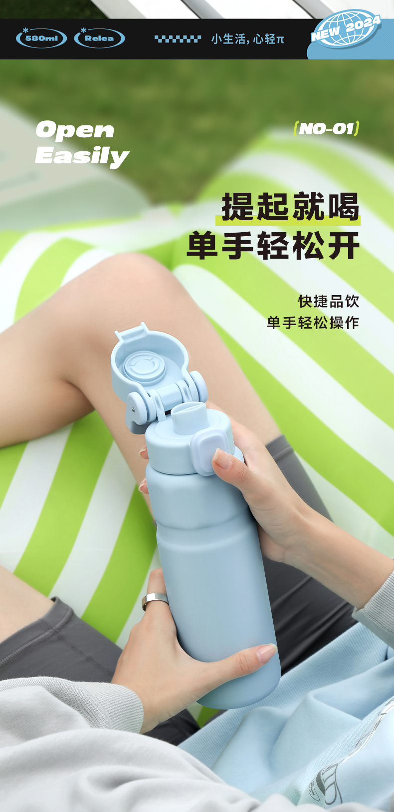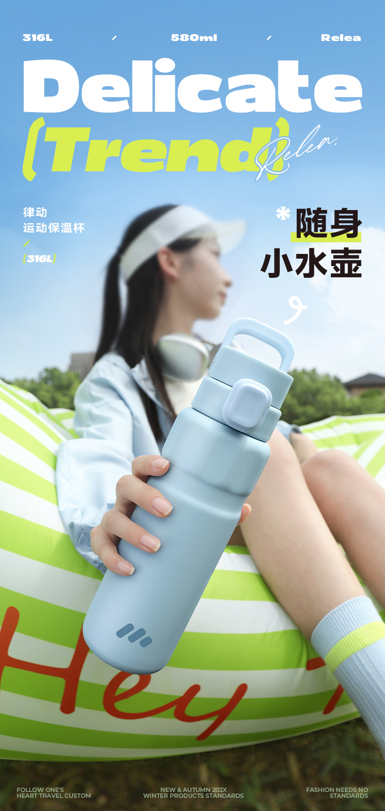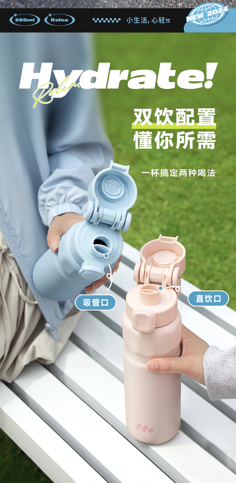 物生物(RELEA) 律动运动保温杯 JV012469-0580-LS00 580ML 山雾蓝(单位:个)