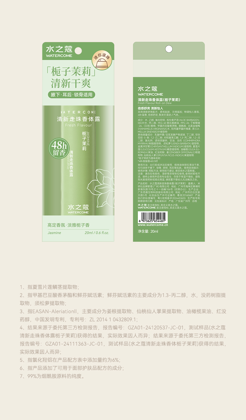 水之蔻 清新走珠香体露 栀子茉莉 20ml*2 绿色(单位:组)