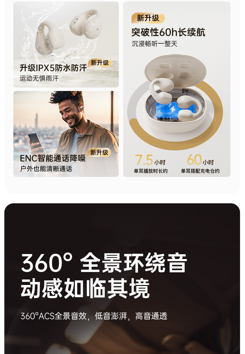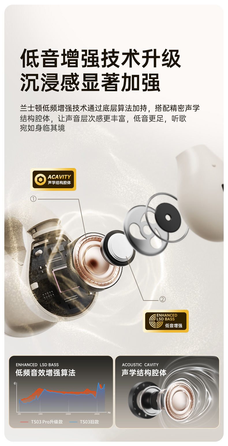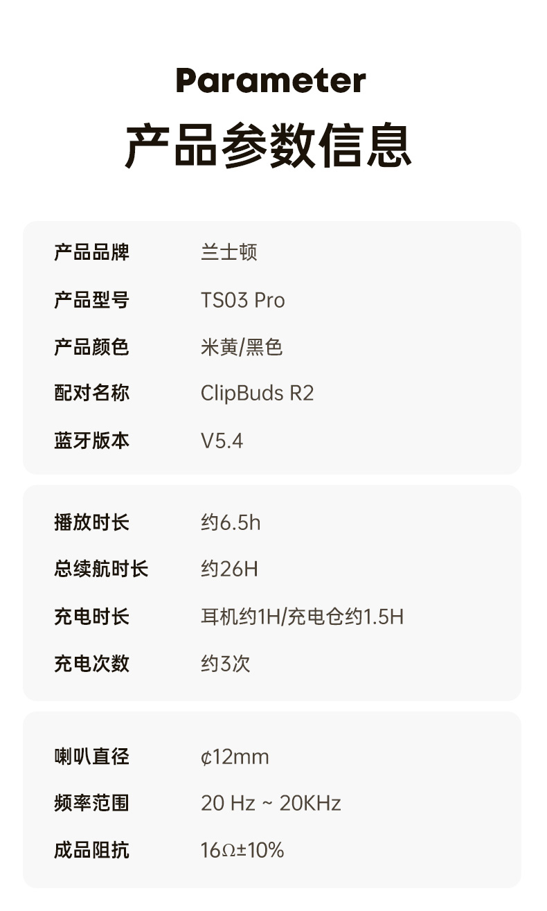 兰士顿 耳夹式无线蓝牙耳机 TS03 Pro 传输半径:约10m 米色(单位:对)