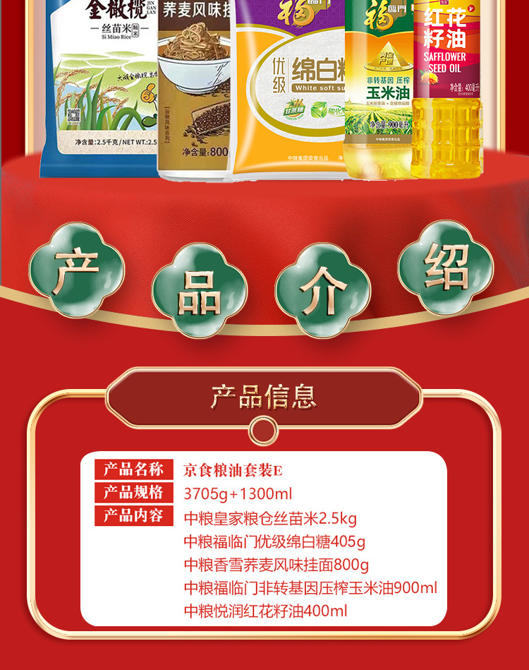 福临门 中粮京食粮油套装E3705g+1300ml 3705g+1300ml 3705g+1300ml 蓝色(单位:包)