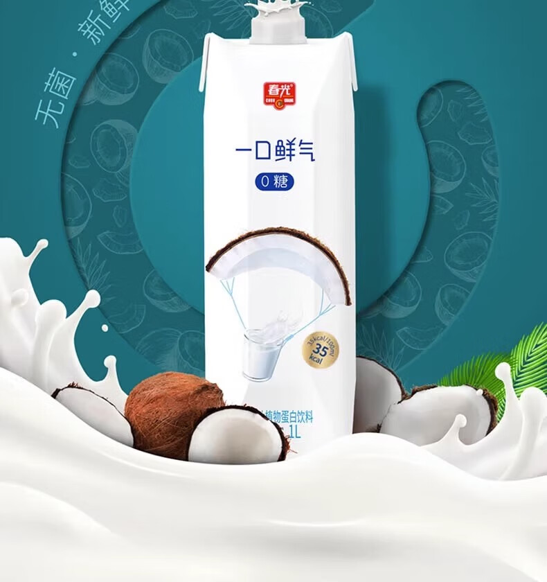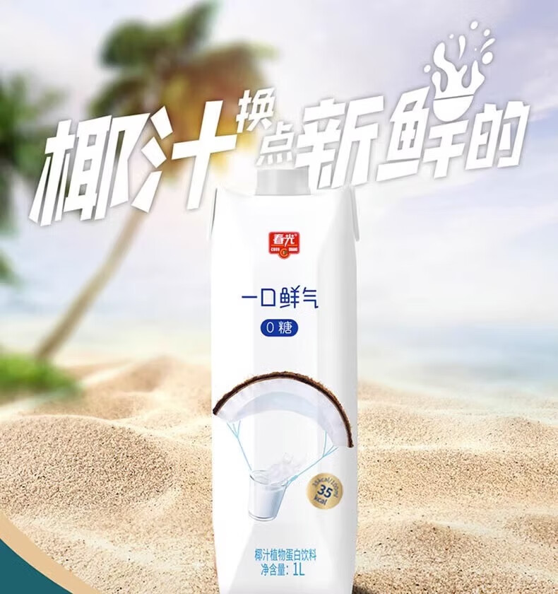 春光 一口鲜气0糖椰子汁 植物蛋白饮料 1L*8瓶 白色(单位:箱)