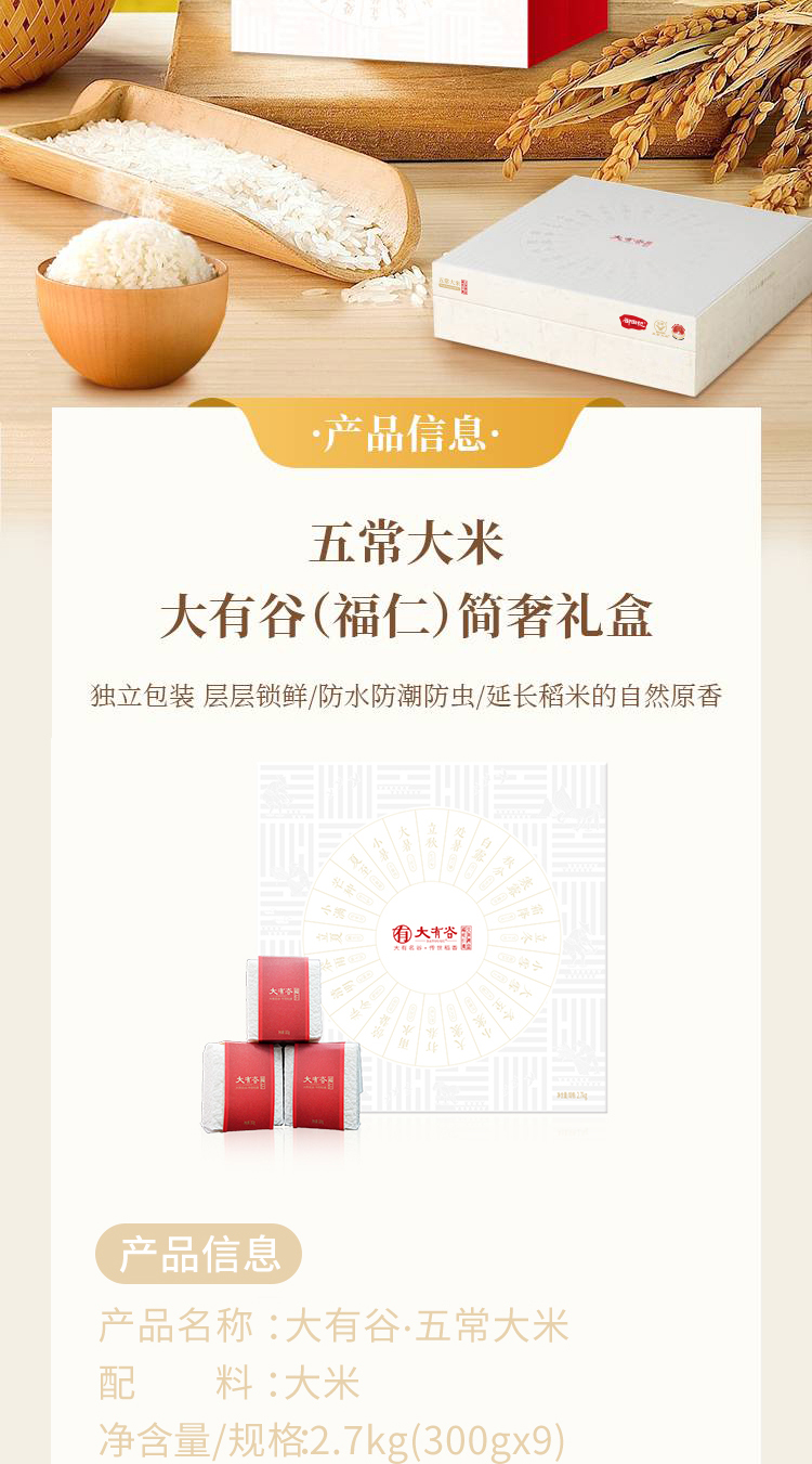 大有谷(DAYOUGU) 有机五常大米 稻花香2号福仁礼盒 2.7kg 白色(单位:箱)