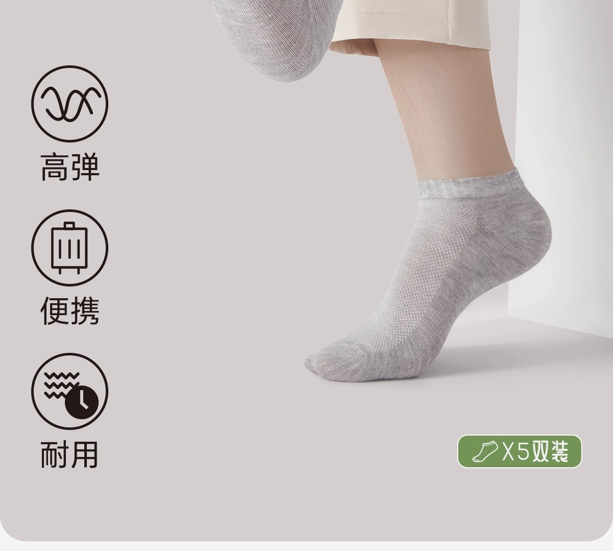 Freego 一次性天竹纤维抗菌灰短袜子 均码 5双装*5包 灰色(单位:组)