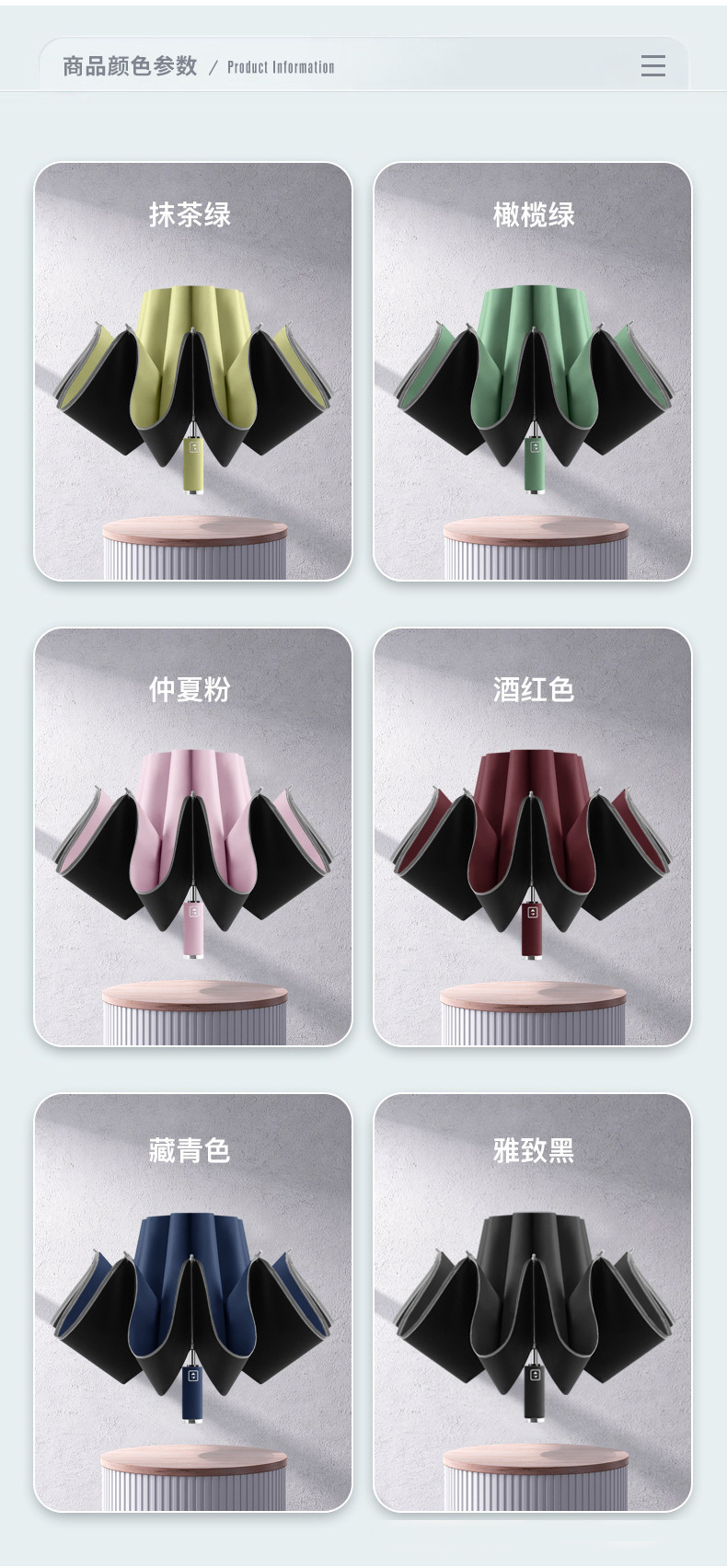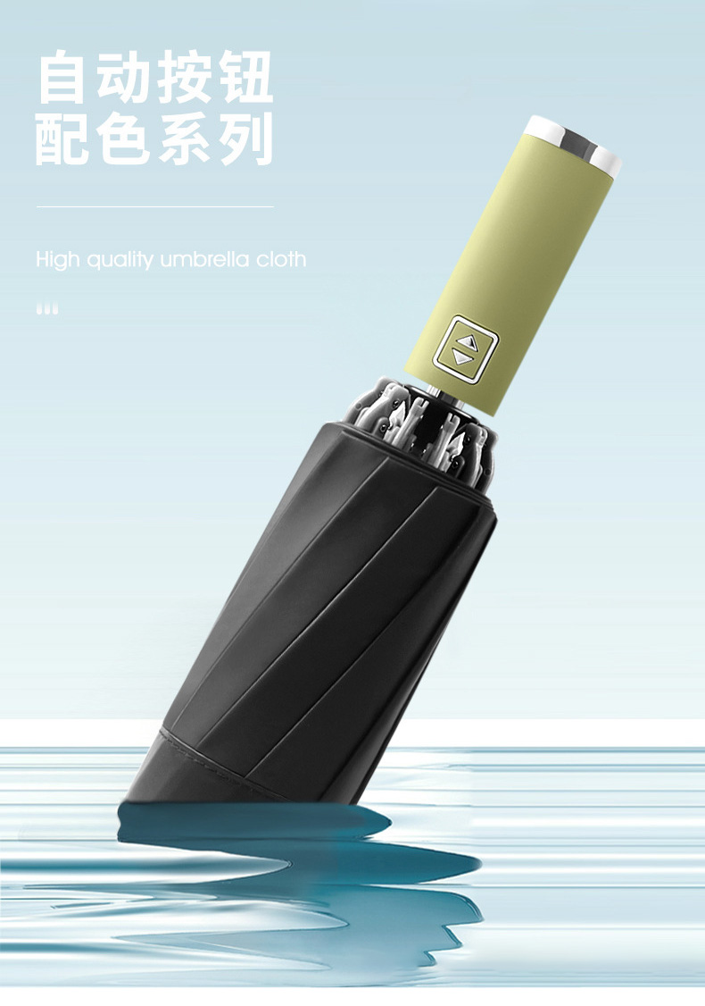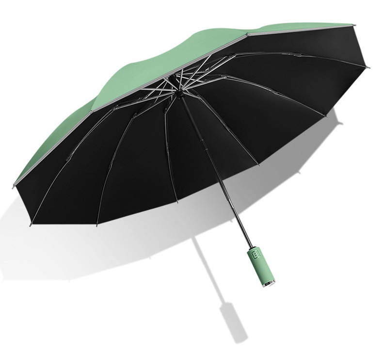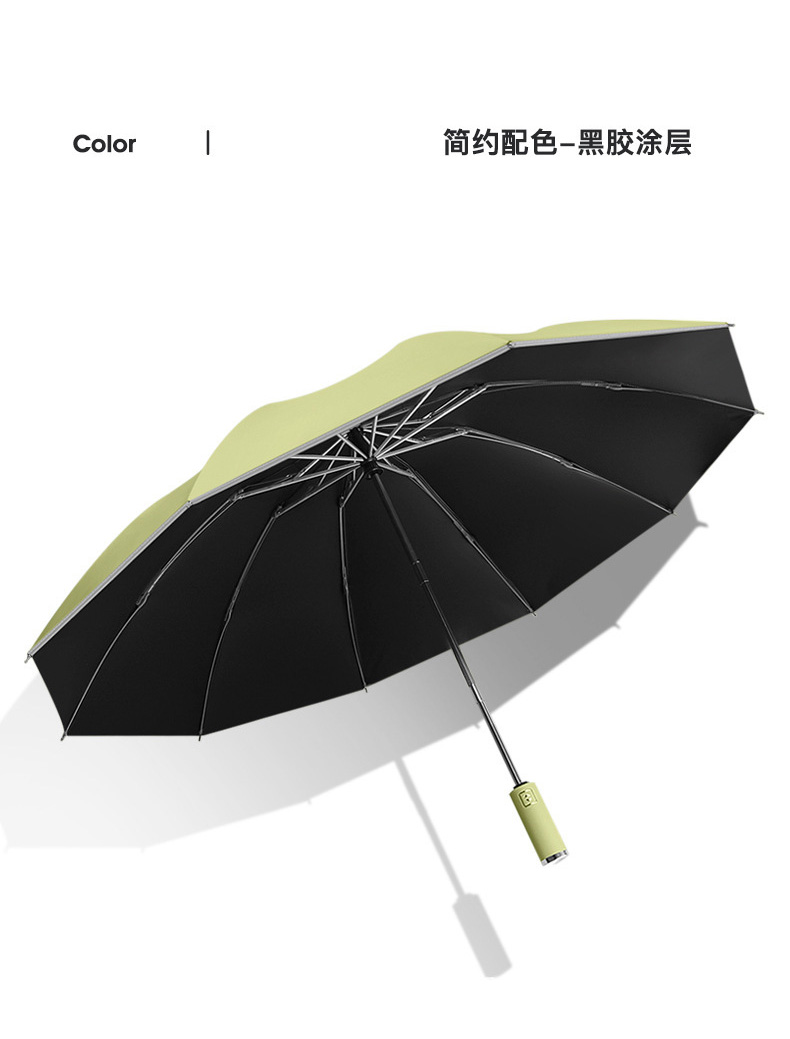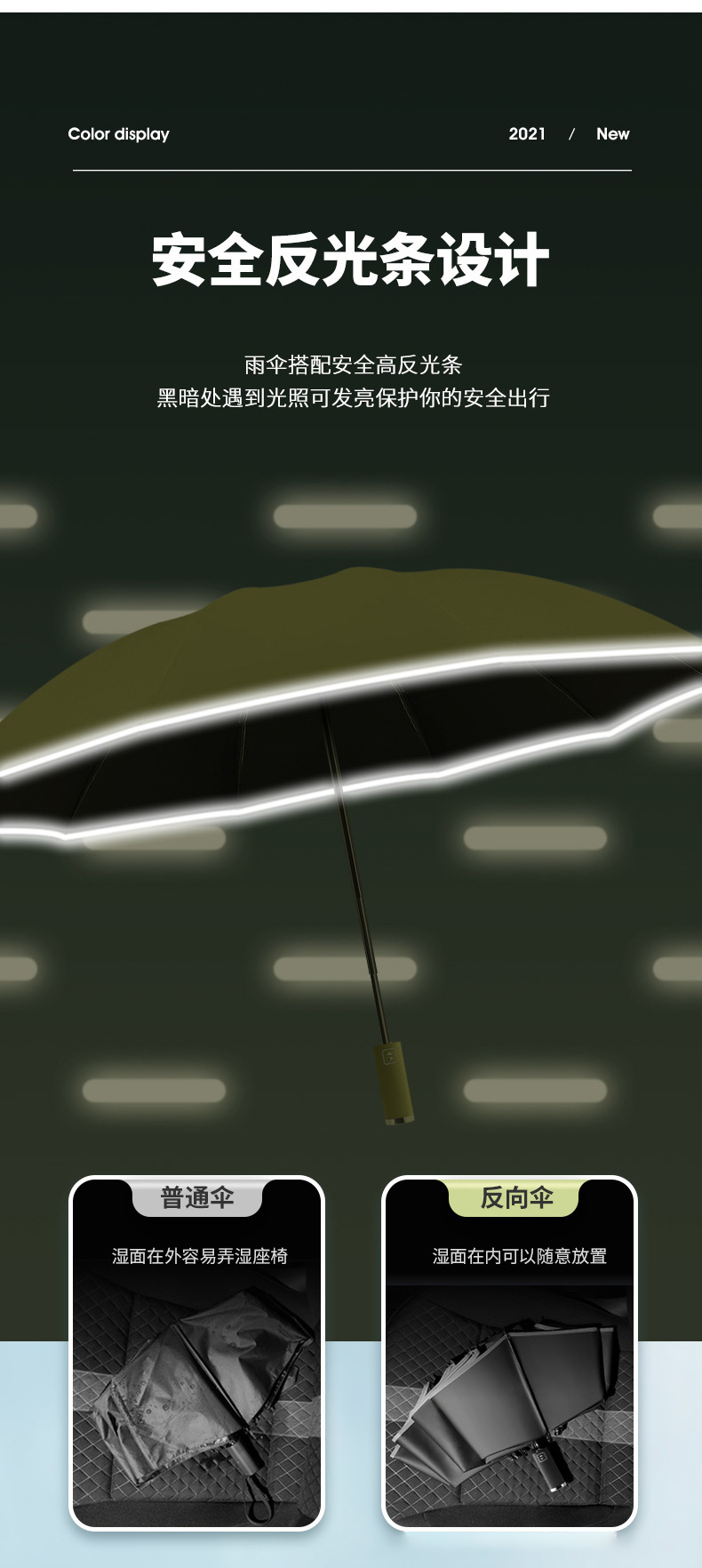 丰懋 全自动反向伞带反光条黑胶纯色折叠雨伞 FXYN05 63*118cm 抹茶绿(单位:把)