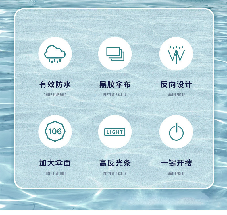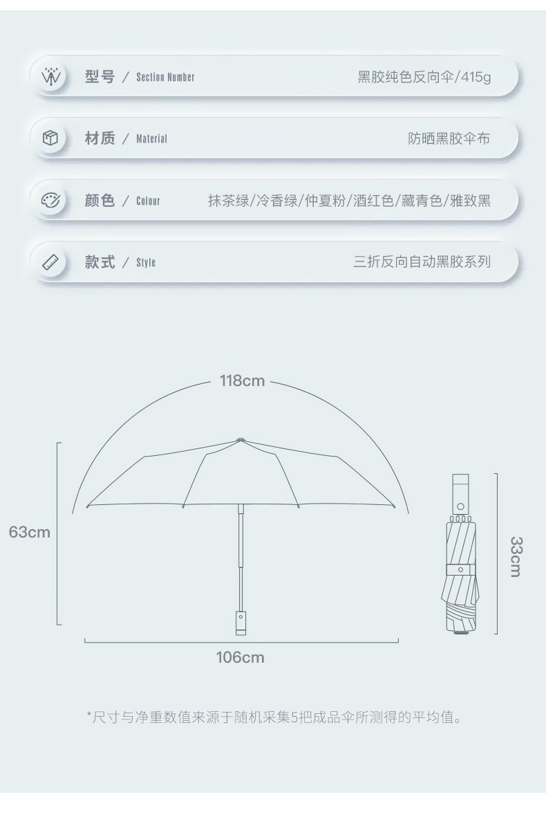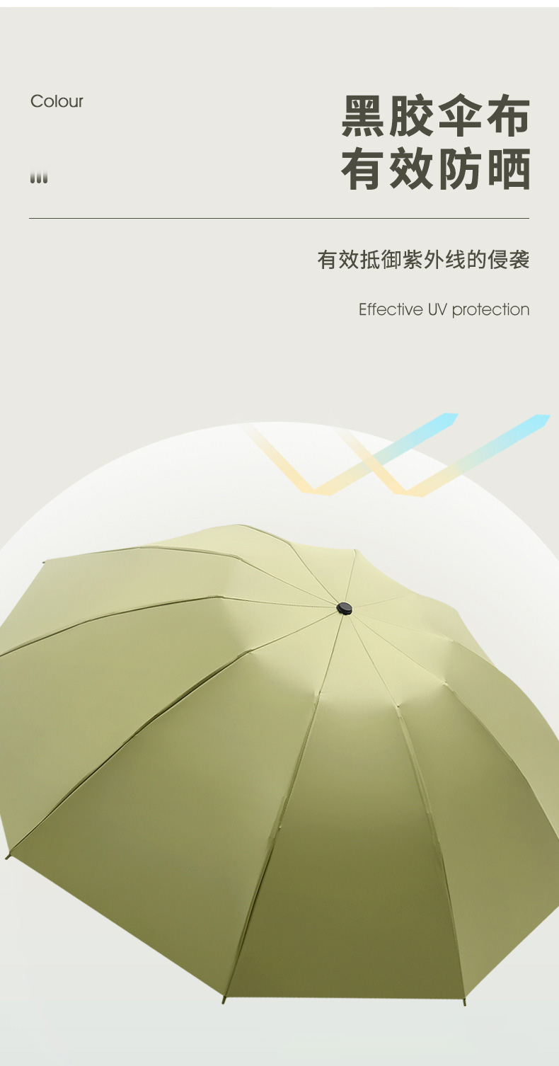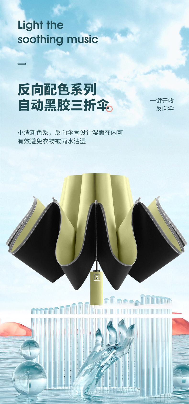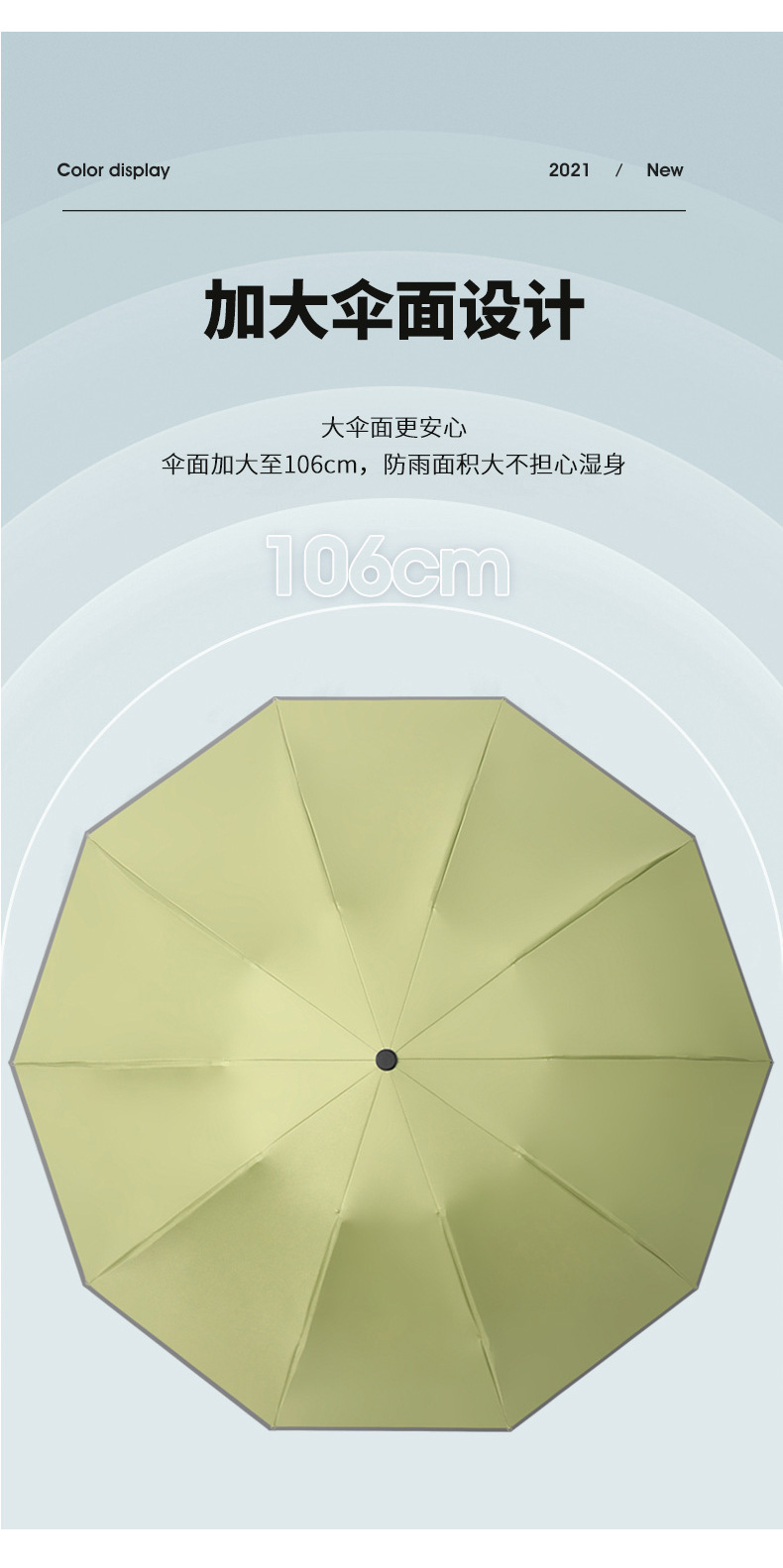 丰懋 全自动反向伞带反光条黑胶纯色折叠雨伞 FXYN05 63*118cm 抹茶绿(单位:把)