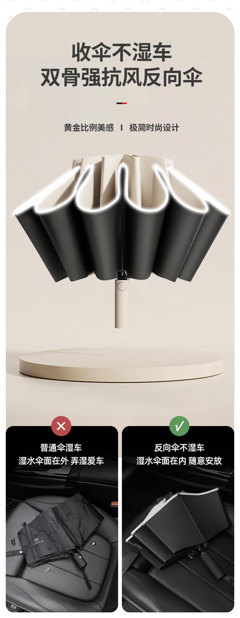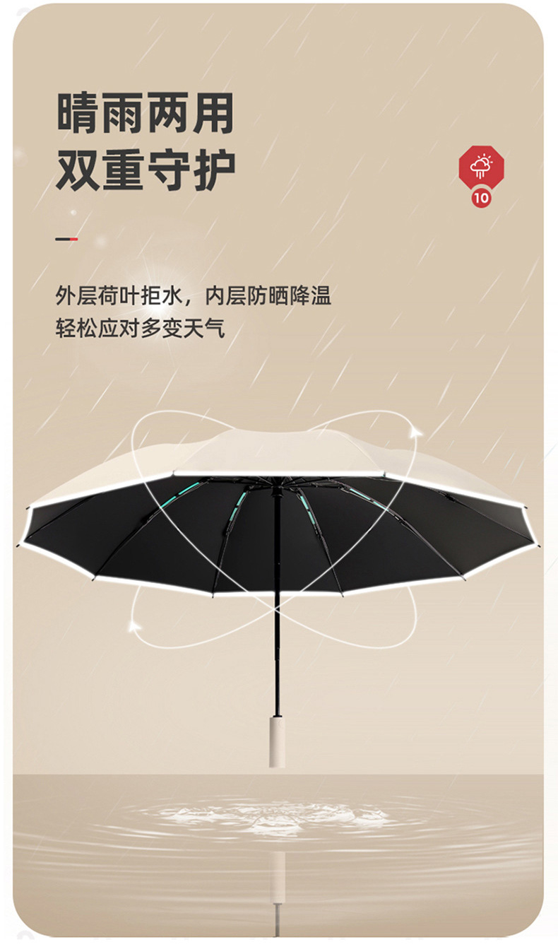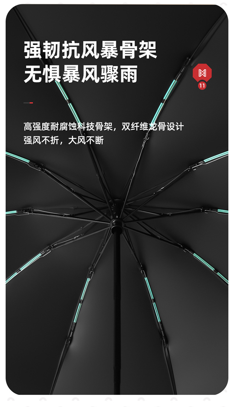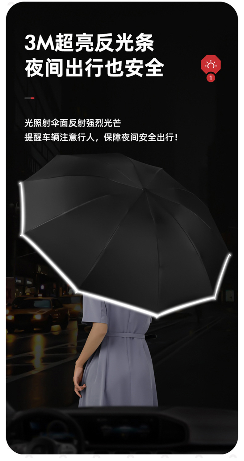 丰懋 全自动太阳伞黑胶晴雨两用加大反向伞30根龙骨雨伞 FXYB03 64*106cm 商务黑(单位:把)