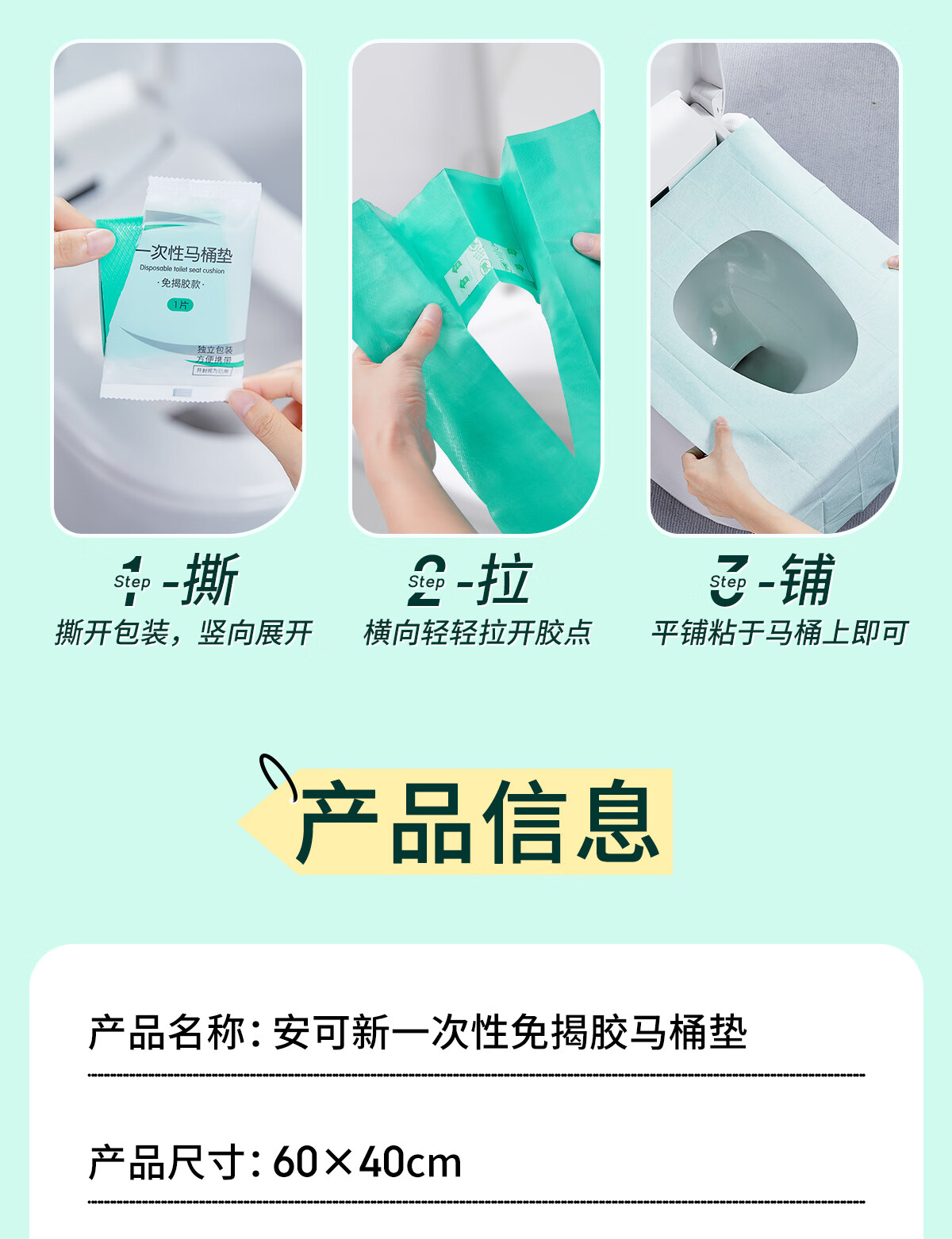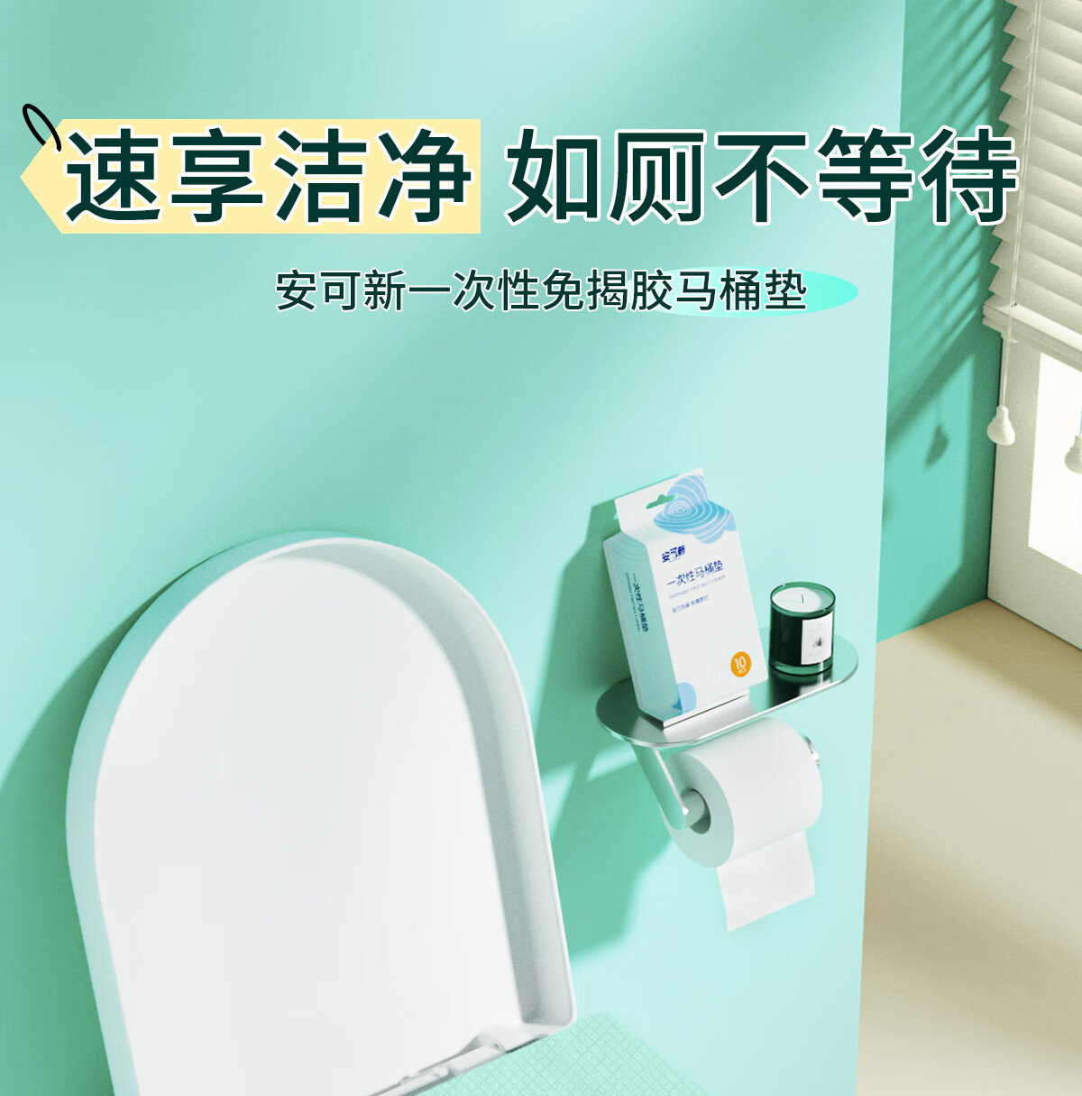 安可新 一次性马桶垫免揭胶加长独立装旅 AKX-3445-8 10片*8 白色(单位:组)