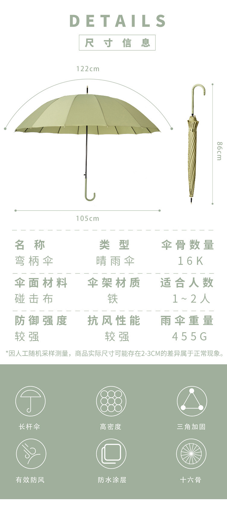 丰懋 长柄抗风雨伞大号16骨文艺女轻便易携抗风伞商务雨伞 FXYB12 86*105cm 长伞米白(单位:把)