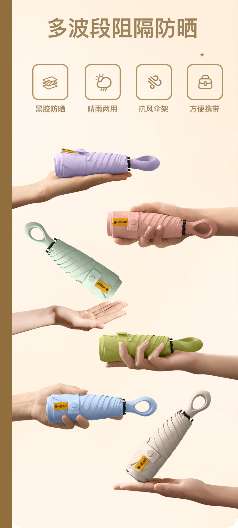 丰懋 手动黑胶防晒太阳伞8骨胶囊伞指环手柄雨伞 FXHJ05 57*90cm 熏衣紫(单位:把)