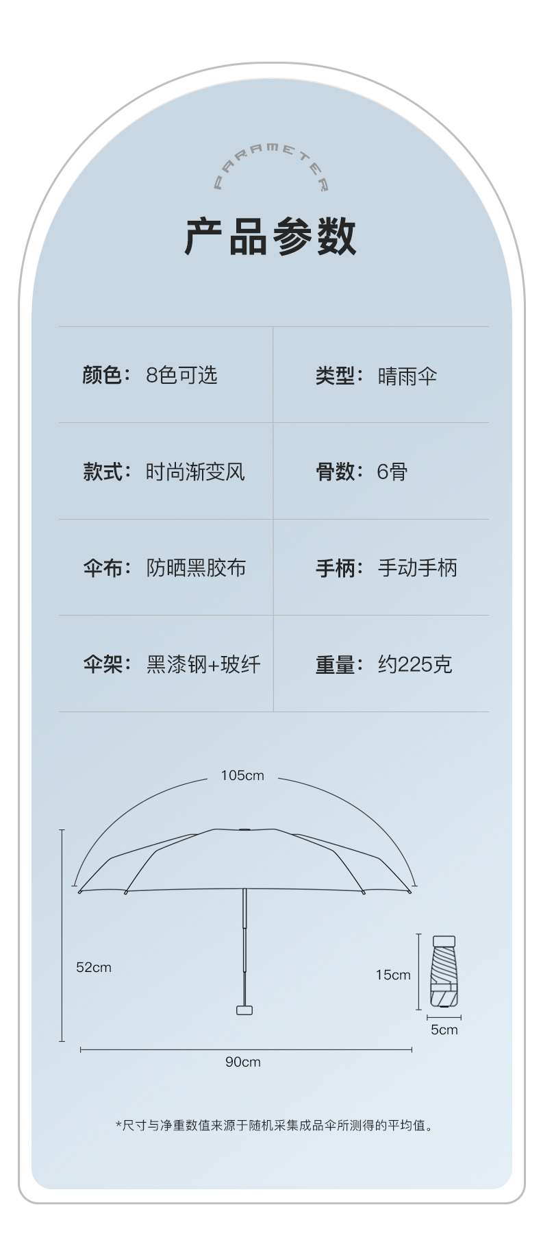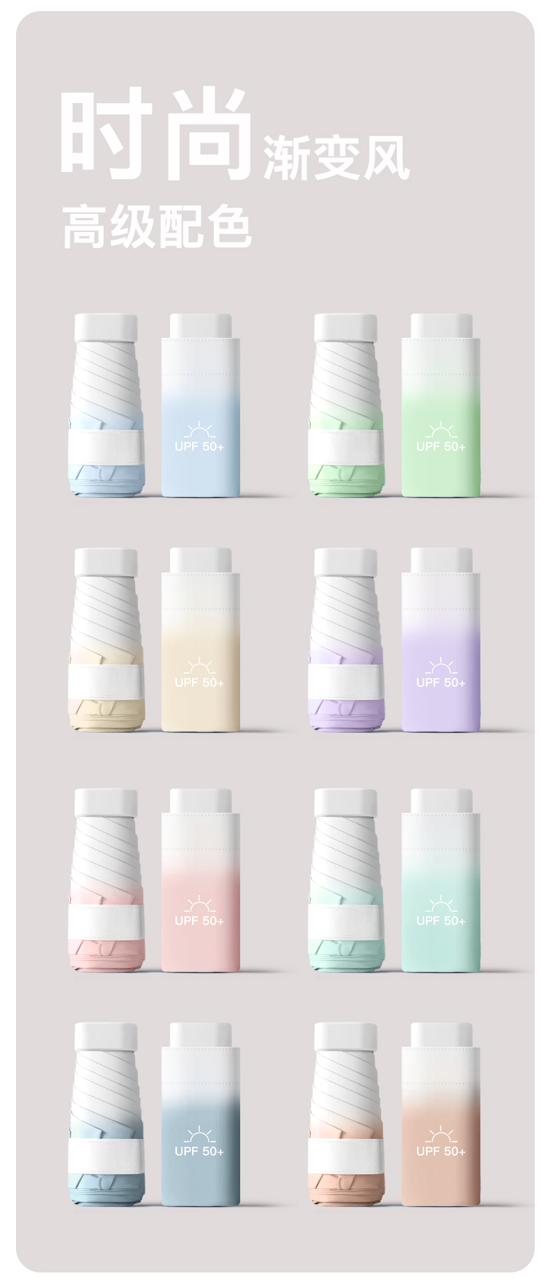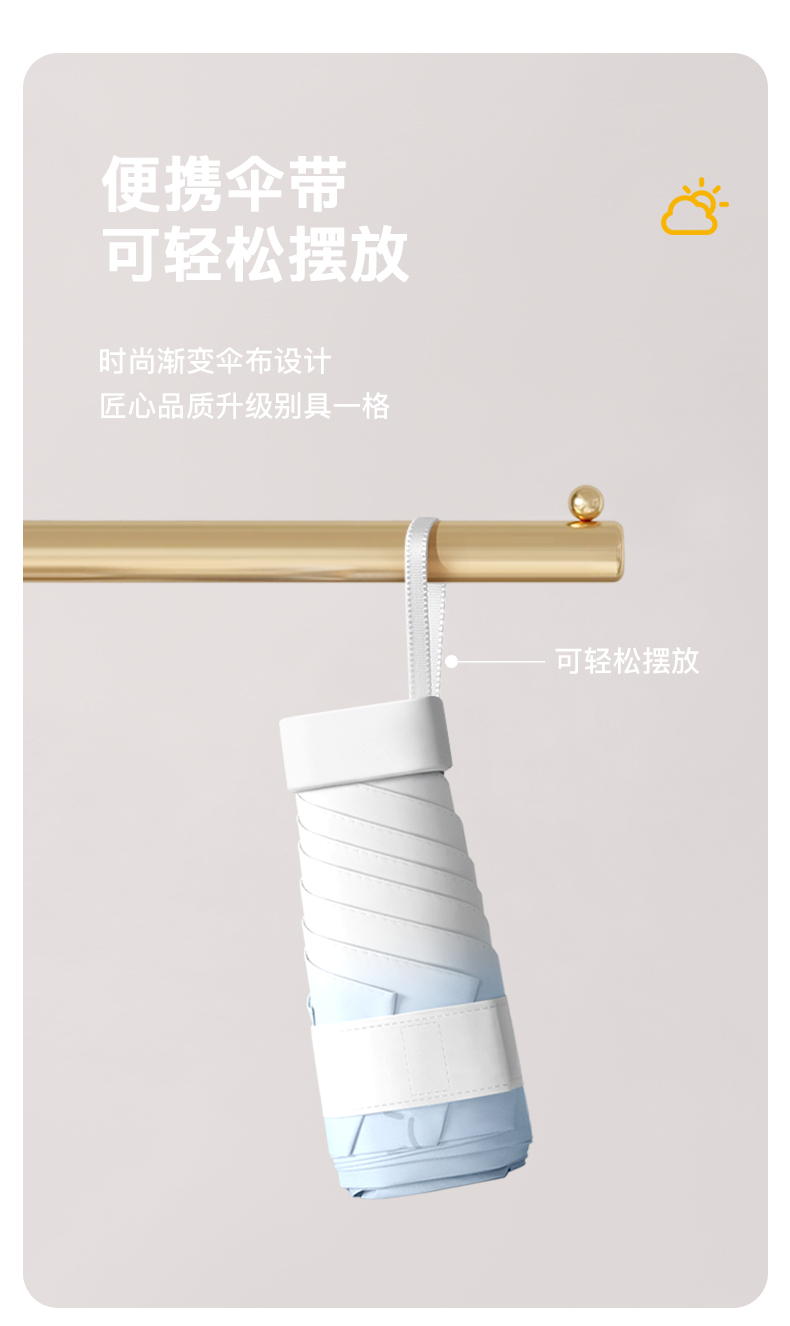 奶咖色-六折扁伞渐变伞面