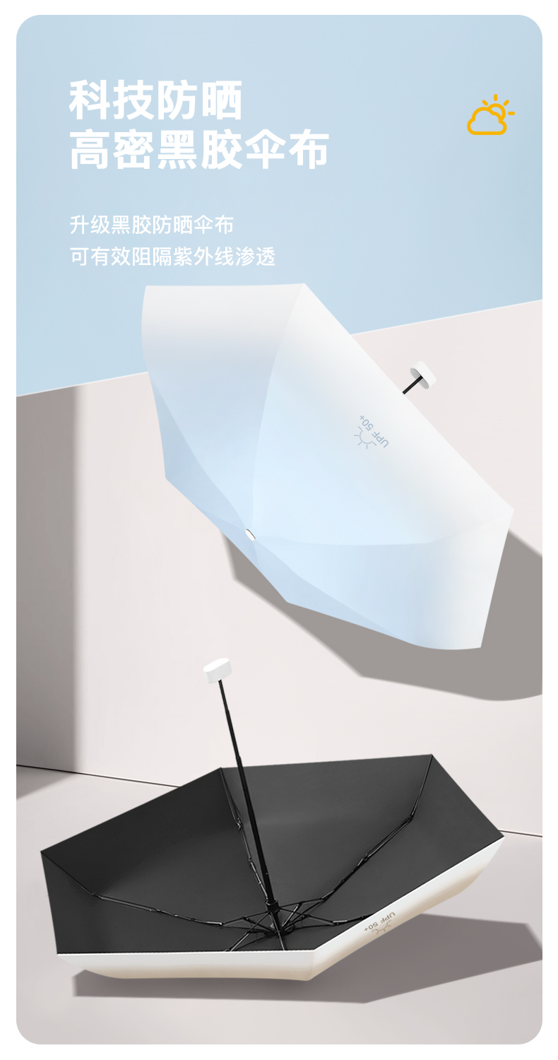 丰懋 黑胶太阳超轻小巧防晒UPF50+太阳伞折叠雨伞 FXHJ06 52*90cm 奶咖色-六折扁伞渐变伞面(单位:把)