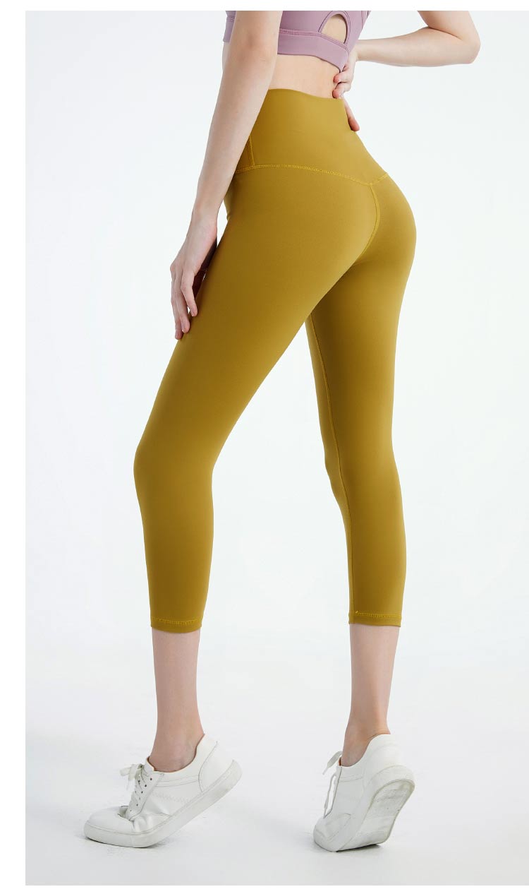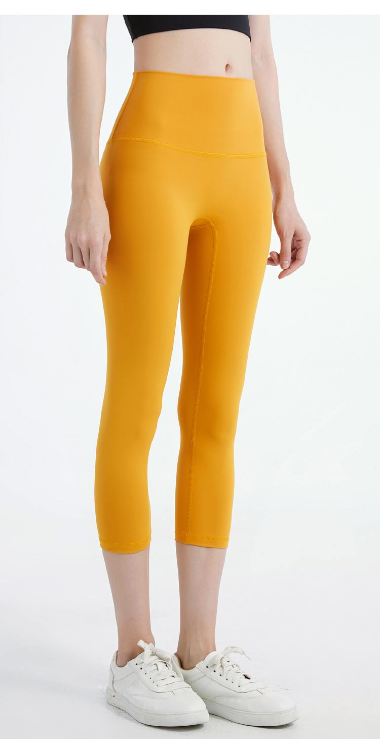 唯卡洛vincrox 瑜伽裤 运动健身休闲 紧身透气吸汗专业瑜伽健身无尬裸感瑜伽七分裤 20605 蜜蜂黄M