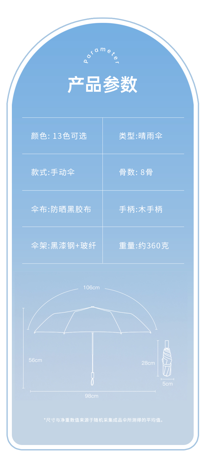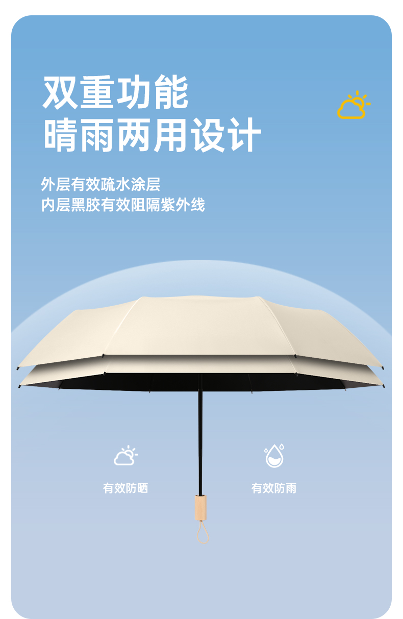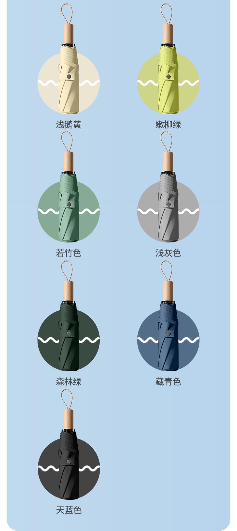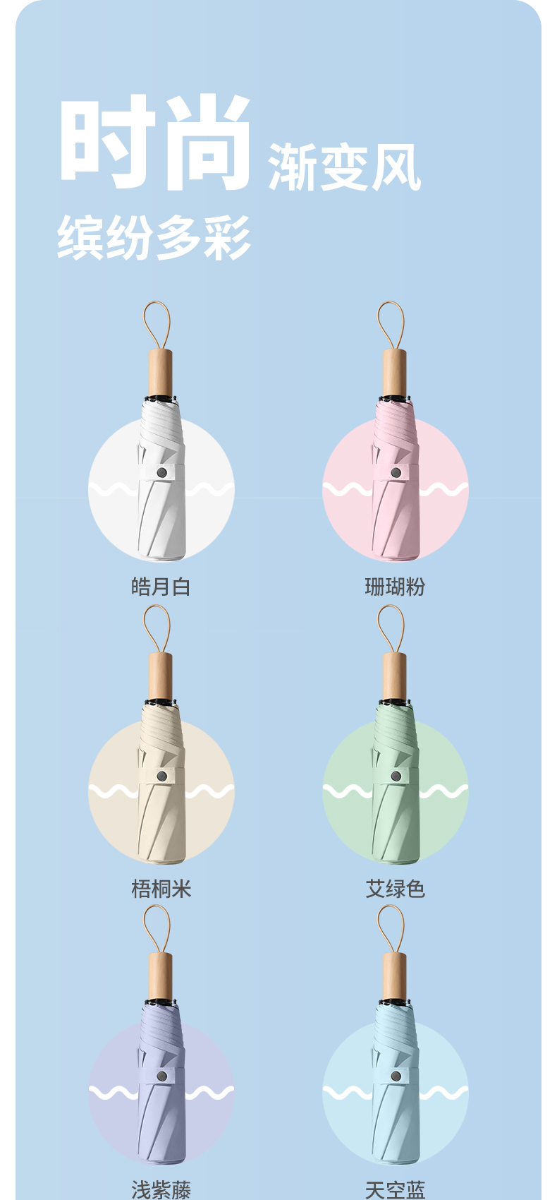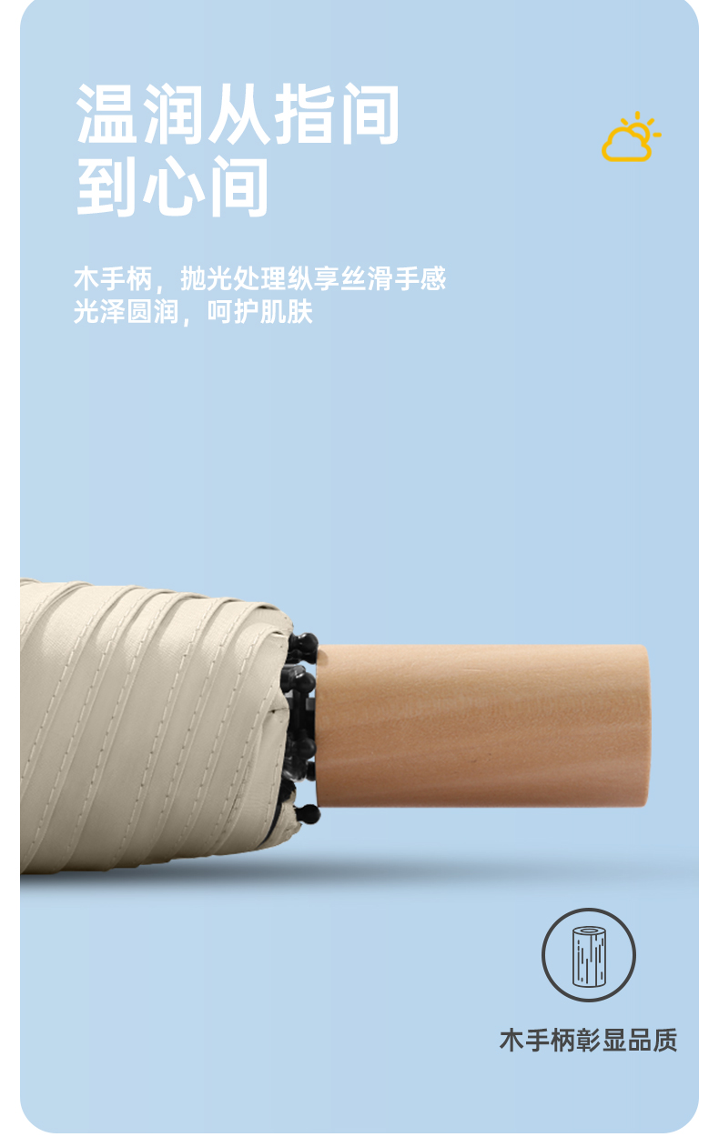 丰懋 黑胶小巧便携防晒UPF50+遮阳太阳伞晴雨两用雨伞 FXHJ09 56*98cm 天空蓝-三折手开木柄(单位:把)
