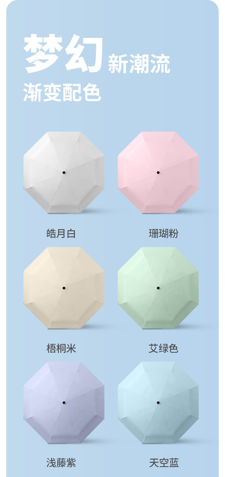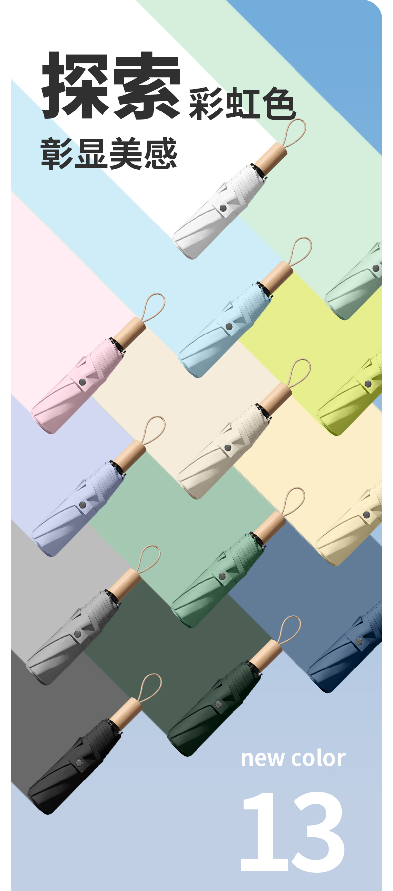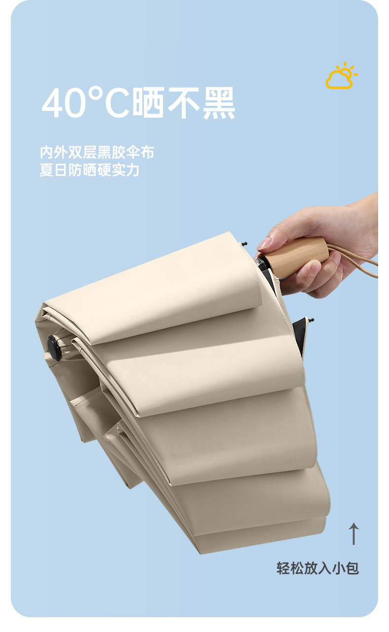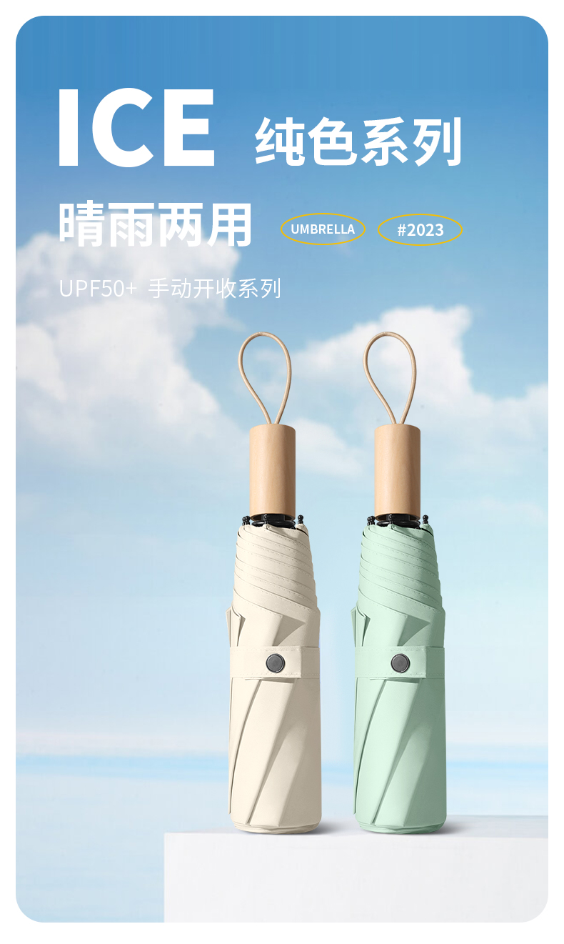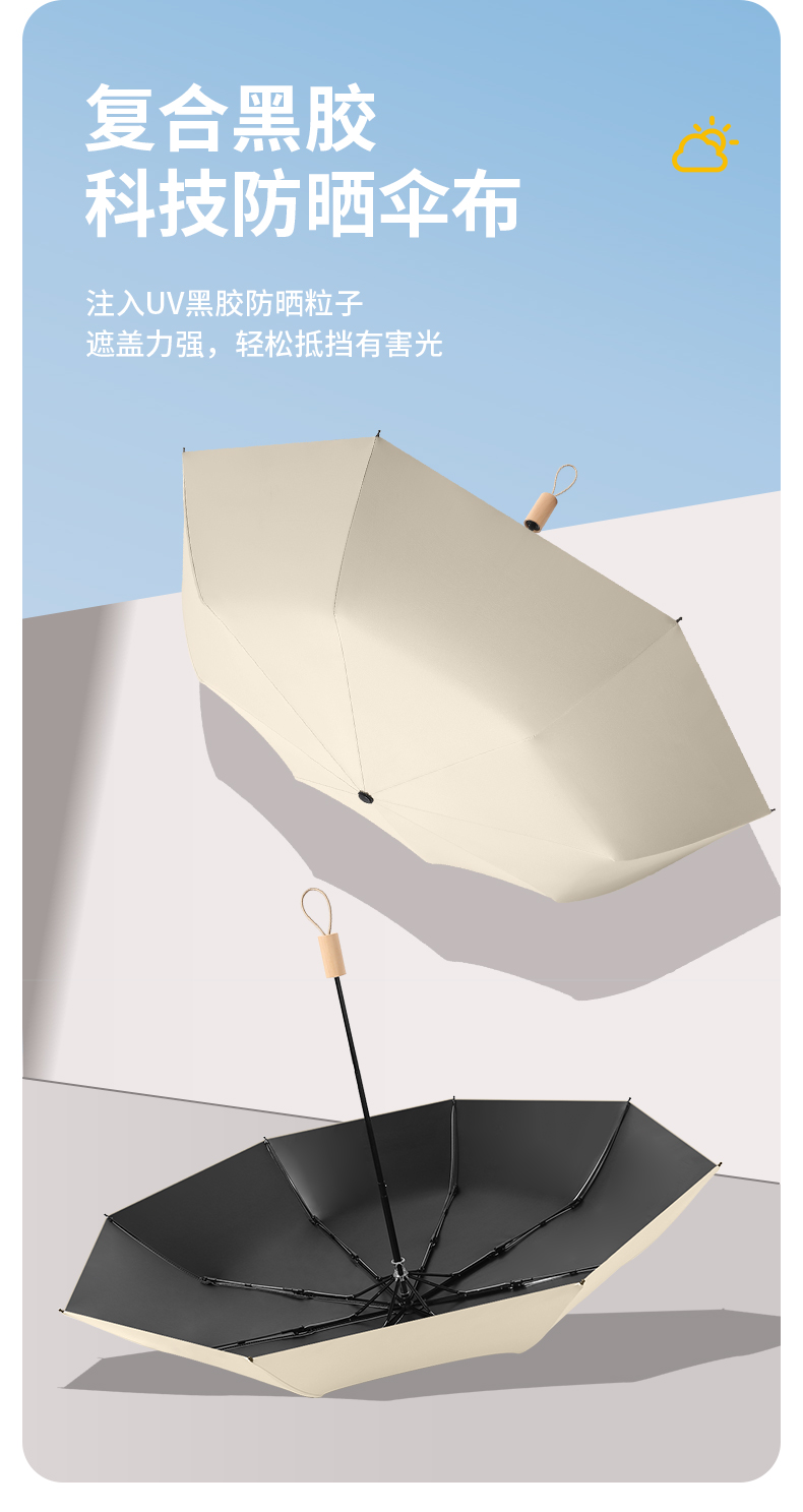 丰懋 黑胶小巧便携防晒UPF50+遮阳太阳伞晴雨两用雨伞 FXHJ09 56*98cm 天空蓝-三折手开木柄(单位:把)