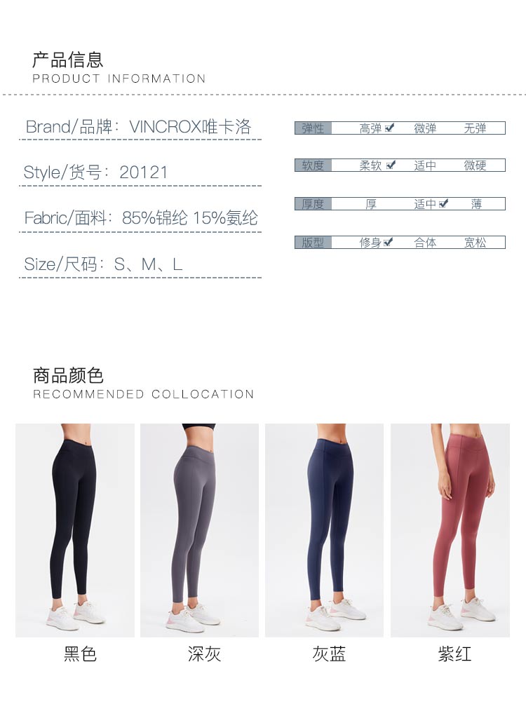 唯卡洛vincrox 瑜伽裤 运动健身休闲 裸感提臀透气女紧身显瘦健身运动九分裤 20121 黑色M