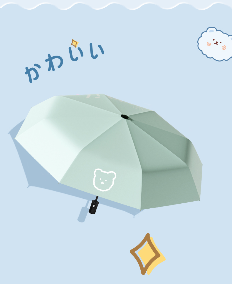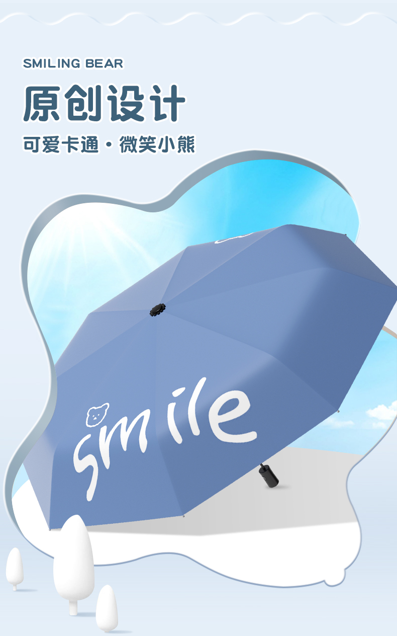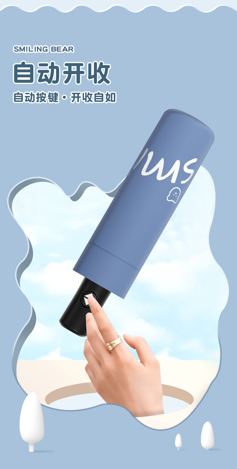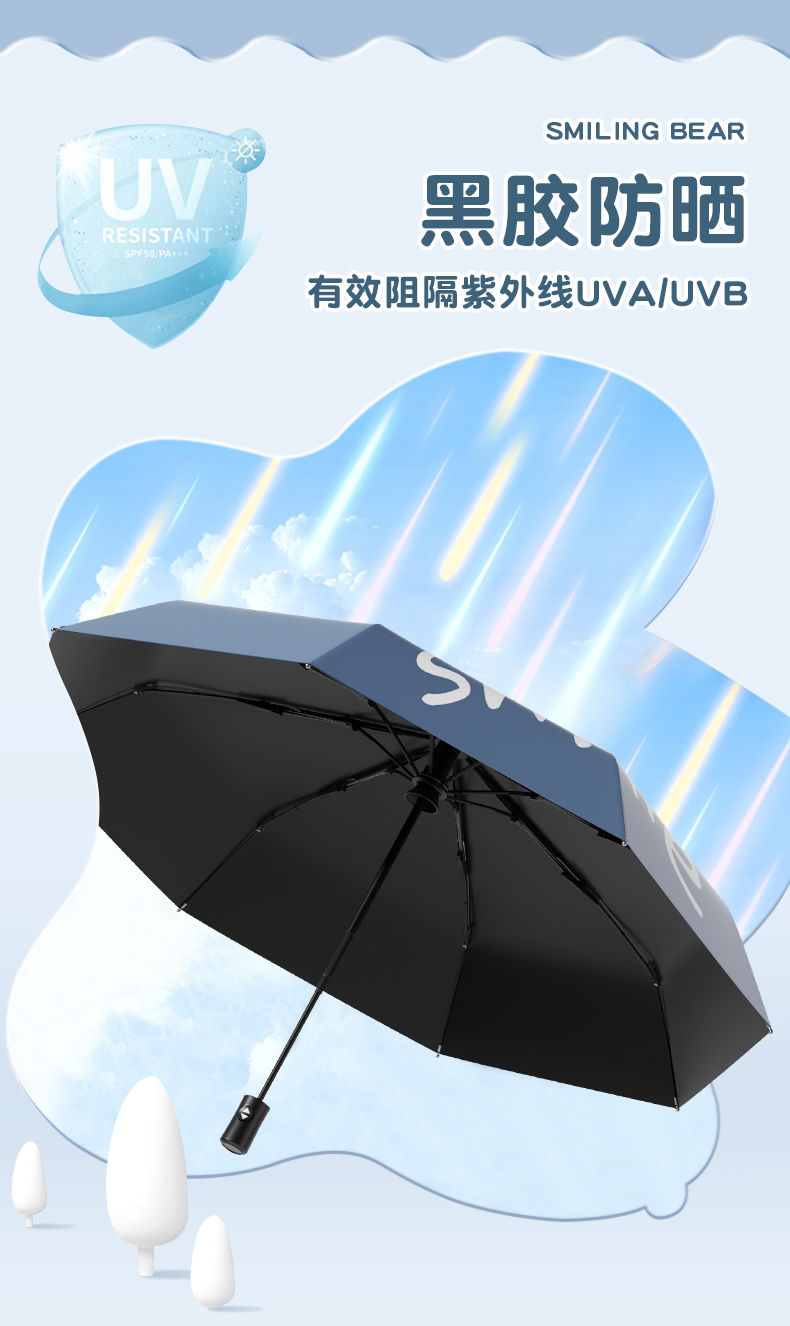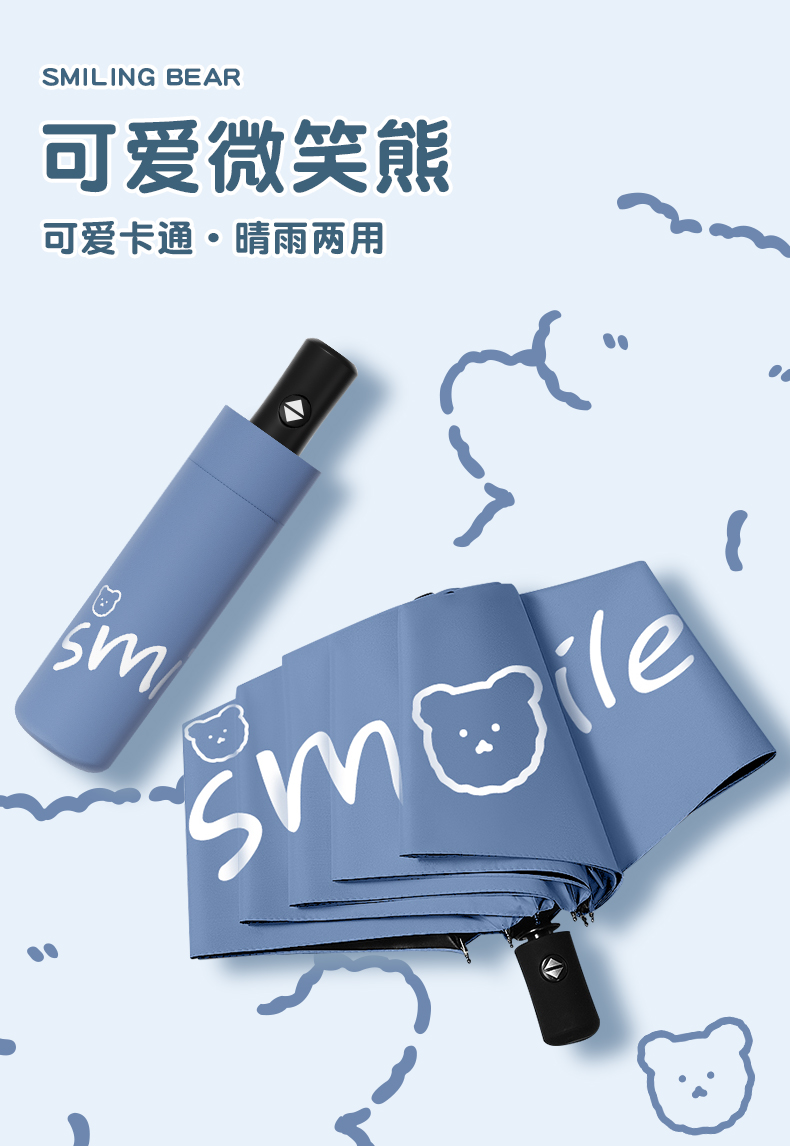丰懋 卡通黑胶防晒太阳伞男女晴雨两用雨伞 FXYB3027 57*97cm 自动微笑熊晚波蓝(单位:把)