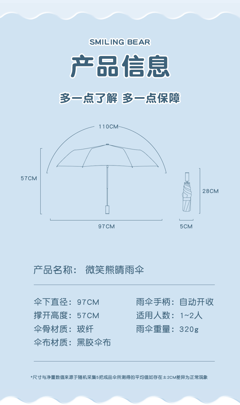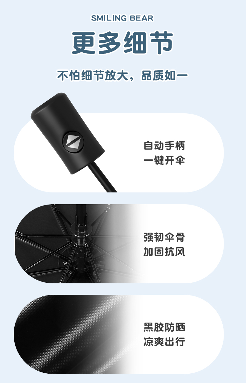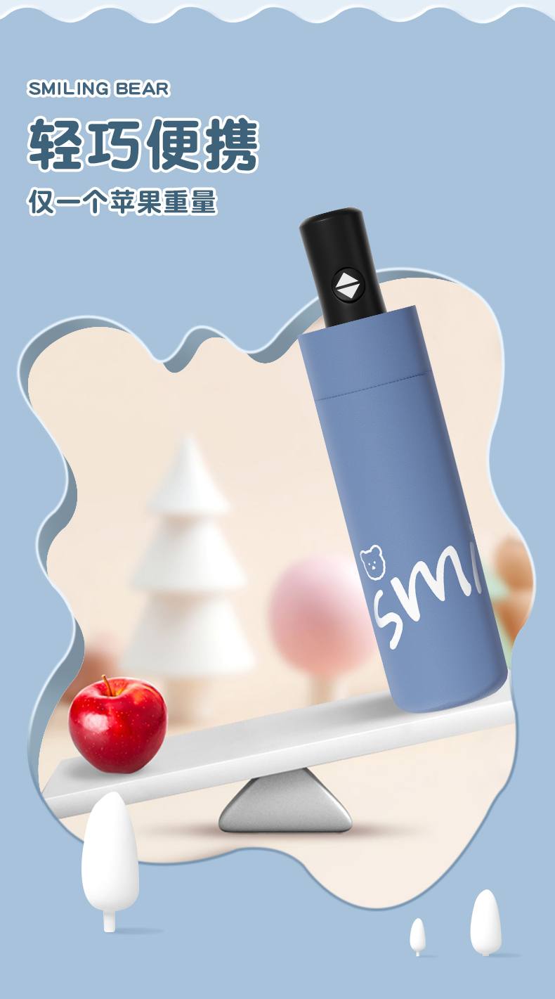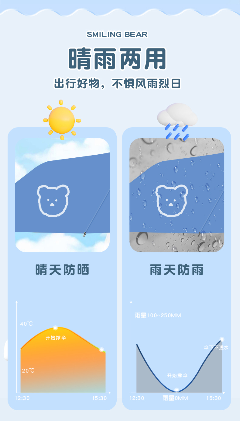 丰懋 卡通黑胶防晒太阳伞男女晴雨两用雨伞 FXYB3027 57*97cm 自动微笑熊晚波蓝(单位:把)