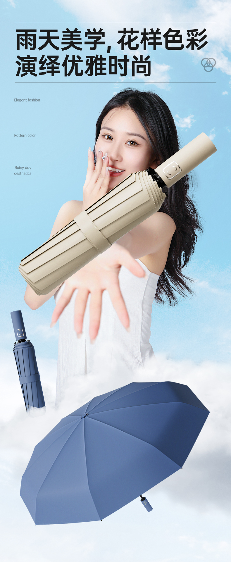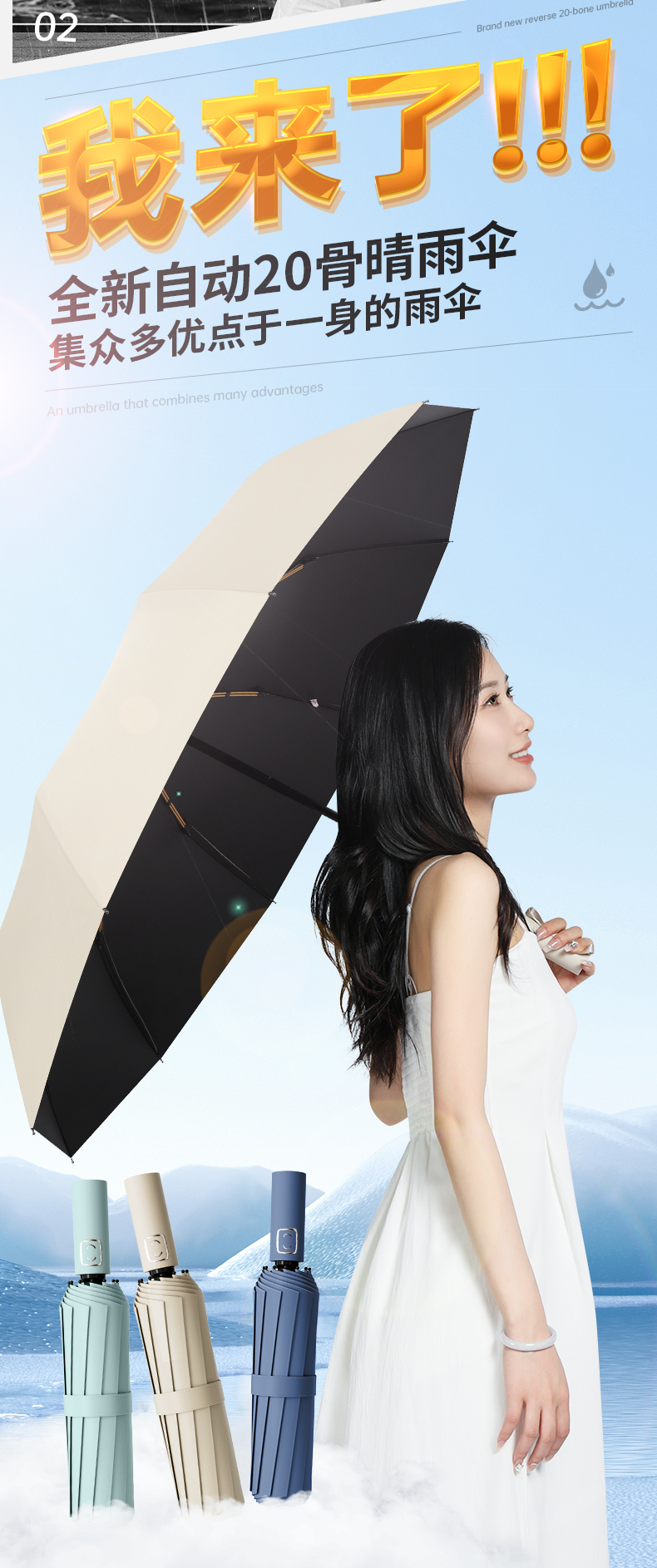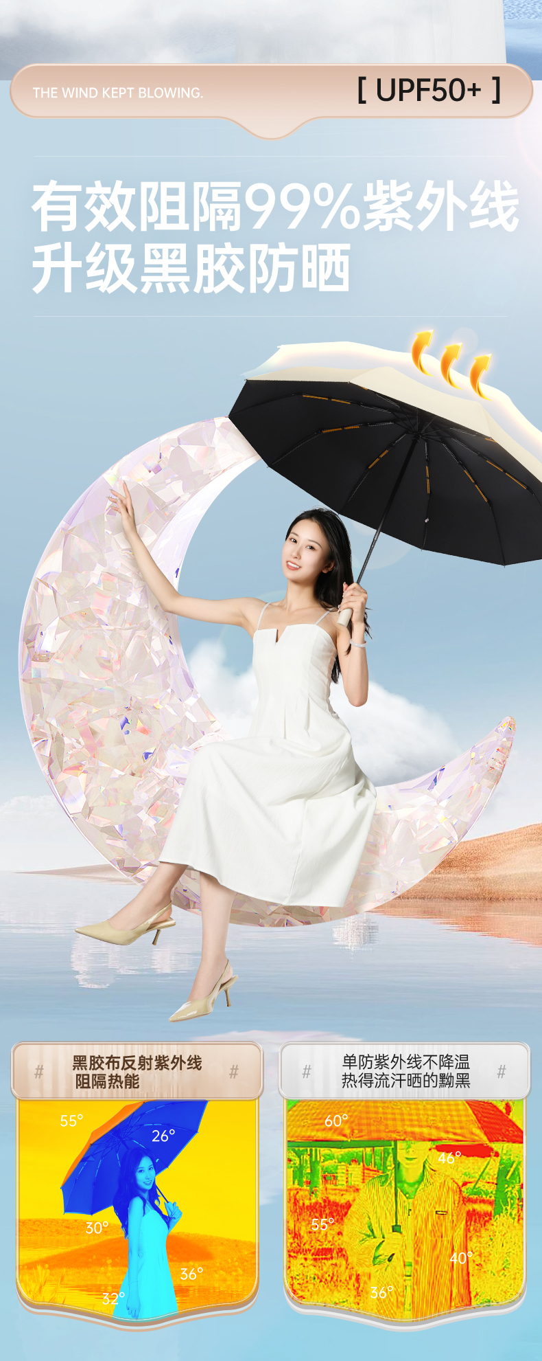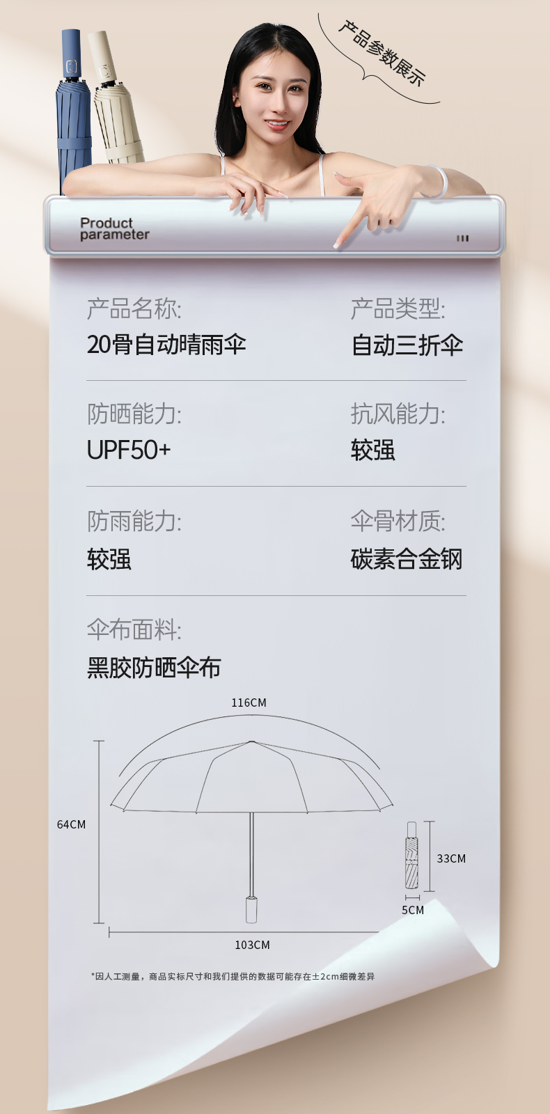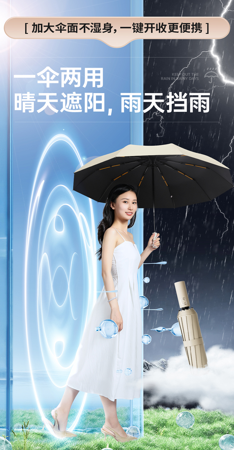 丰懋 防晒UPF50+遮阳伞大号晴雨两用雨伞 FXYB3100 64*103cm 10k双骨自动暗夜绿(单位:把)